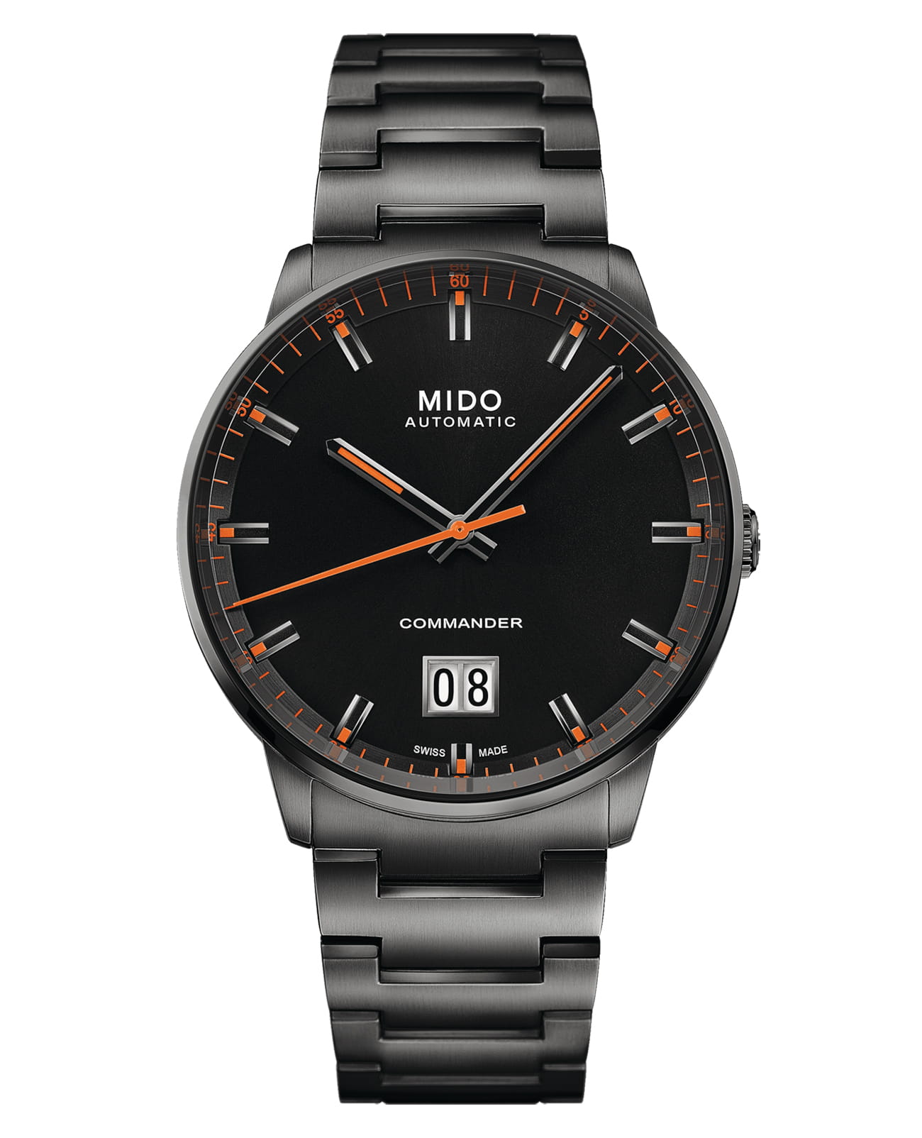Мужские швейцарские механические часы Mido Commander Big Date M021.626.33.051.00, механический механизм (автоматический калибр) с высокой точностью. Часы Commander Big Date выпущены в честь 100-летнего юбилея марки. Крупное окошко даты в положении «6 часов» обеспечивает предельно удобную читаемость показаний. Сатинированный циферблат с солнечным узором отличается удивительной чистотой и строгостью, которую подчеркивает полированный безель. Сапфировое стекло устойчивое к появлению царапин, обладающее высокой прозрачностью. Класс водозащиты: 50 метров, позволит защитить корпус от случайных брызг или капель дождя. Корпус часов изготовлен из стали, с PVD покрытием черного цвета.