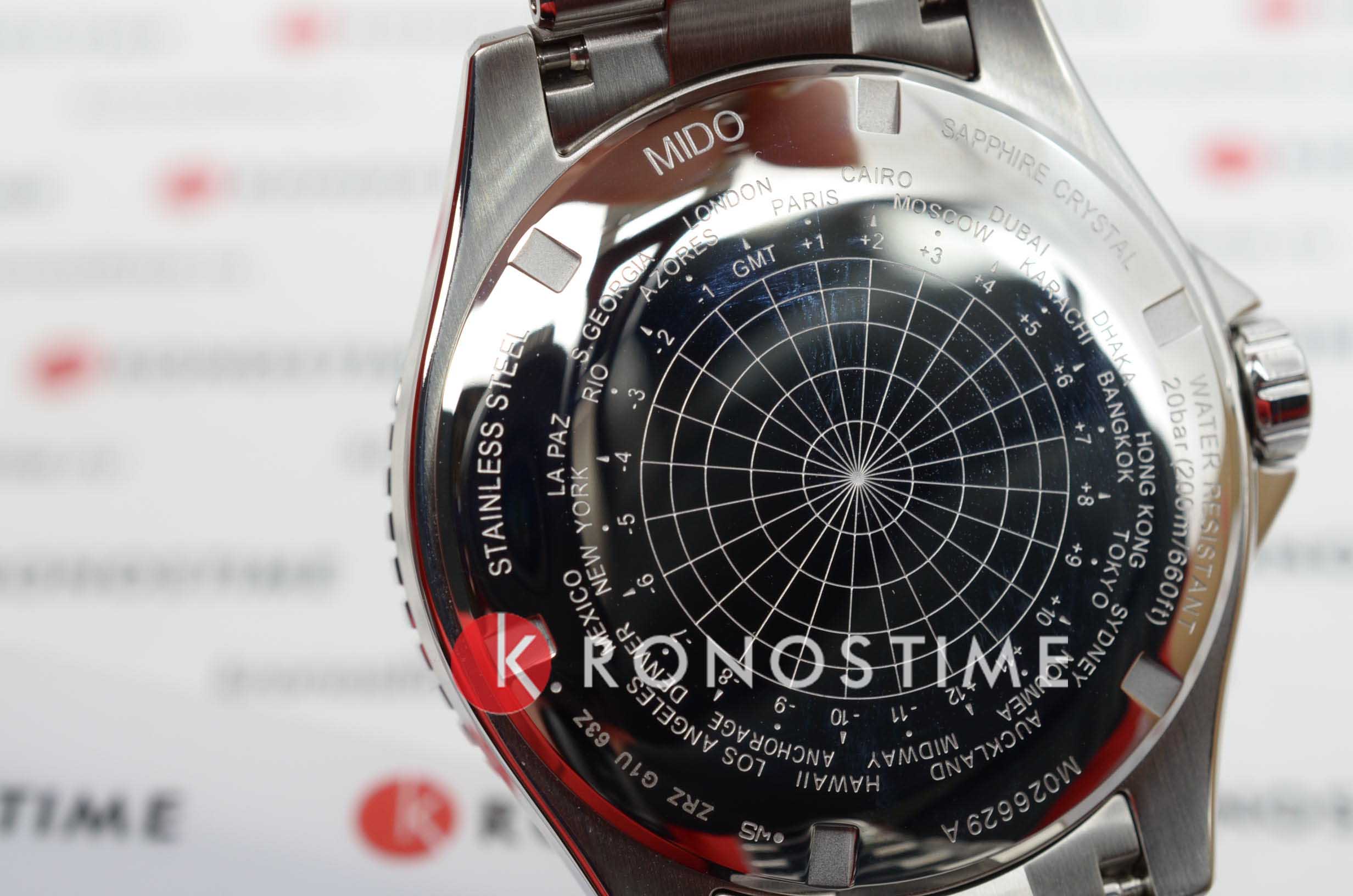 Мужские швейцарские механические часы со вторым часовым поясом Mido Ocean Star GMT M026.629.11.051.01, механический механизм (автоматический калибр) с высокой точностью. Сапфировое стекло устойчивое к появлению царапин, обладающее высокой прозрачностью. Класс водозащиты: 200 метров, позволит плавать, нырять и заниматься другими водными видами спорта. Корпус часов изготовлен из стали, цвета.