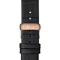 Кожаный ремешок чёрного цвета с текстурой под аллигатора и раскладной застёжкойРаскладная застёжкаТакой тип застёжки используется только на браслетах из металла. Она никогда не раскрывается полностью, происходит разделение на 2 и более частей. Раскладывающая застёжка снизит вероятность потери часов к минимуму. обеспечивает комфортное ношение и надёжную фиксацию. Водозащита до 3 ATM делает часы подходящими для повседневного использования, включая случайные контакты с водой.