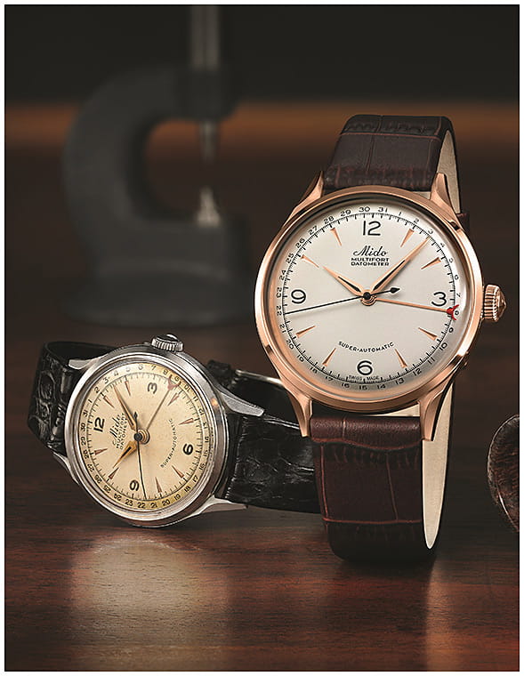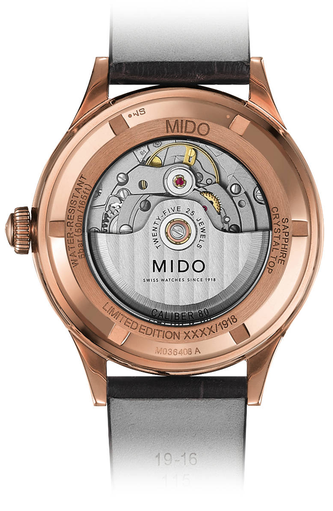 Multifort Datometer Limited Edition - лимитированный выпуск (1918 экземпляров), переиздание одноименной модели 1939-го года в честь векового юбилея марки Mido. Завинчивающаяся прозрачная задняя крышка. Запас хода до 80 часов. Мужские швейцарские механические часы (автоматический калибр) с высокой точностью. Сапфировое стеклоСапфировое стеклоПрочный и надёжный материал из кристалла сапфира синтетического происхождения, характеризующийся особой твёрдостью и устойчивостью к царапинам и повреждениям. устойчивое к появлению царапин, обладающее высокой прозрачностью. Класс водозащиты: 50 метров, защитит корпус от случайных брызг и капель дождя. Корпус часов изготовлен из стали с PVD-покрытиемPVDУльтратонкое покрытие наносится в технике вакуумного напыления, сочетает в себе нитрид титана особой прочности со слоем золота или оксида хрома. Несёт в себе декоративную или защитную функцию. .
