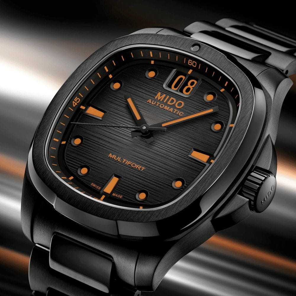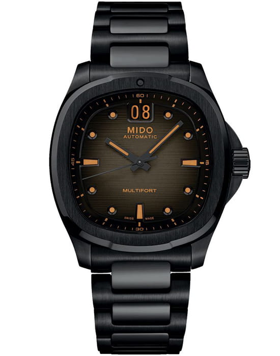 Мужские механические швейцарские часы Mido Multifort TV Big Date M049.526.33.081.00, механический механизм (автоматический калибр) с высокой точностью. Сапфировое стеклоСапфировое стеклоПрочный и надёжный материал из кристалла сапфира синтетического происхождения, характеризующийся особой твёрдостью и устойчивостью к царапинам и повреждениям. устойчивое к появлению царапин, обладающее высокой прозрачностью. Корпус часов изготовлен из нержавеющей стали с PVD-покрытиемPVDУльтратонкое покрытие наносится в технике вакуумного напыления, сочетает в себе нитрид титана особой прочности со слоем золота или оксида хрома. Несёт в себе декоративную или защитную функцию. в форме телевизора, столь же впечатляющий, сколь и точный, благодаря своему мощному механическому механизму. Современный и динамичный дизайн этих швейцарских часов подчеркивается ярким горизонтальным циферблатом с матовой отделкой, а также их отличительной функцией: большой датой в положении 12 часов. Стрелки с люминесцентным покрытиемЛюминесцентное покрытиеПозволяет считывать показания времени в темноте. Производители наносят на стрелки, часовые индексы, безель или поверхность циферблата светонакопительный состав, дающий холодное свечение.. Мощный автоматический механизм последнего поколения Calibre 80 оснащен высокотехнологичной балансировочной пружиной Nivachron ™ , которая обеспечивает исключительную устойчивость к ударам и магнитным полям. Класс водозащиты: 100 метров, позволит плавать, нырять и заниматься другими водными видами спорта. Стальной браслет с PVD-покрытиемPVDУльтратонкое покрытие наносится в технике вакуумного напыления, сочетает в себе нитрид титана особой прочности со слоем золота или оксида хрома. Несёт в себе декоративную или защитную функцию. на раскладной застёжкеРаскладная застёжкаТакой тип застёжки используется только на браслетах из металла. Она никогда не раскрывается полностью, происходит разделение на 2 и более частей. Раскладывающая застёжка снизит вероятность потери часов к минимуму..