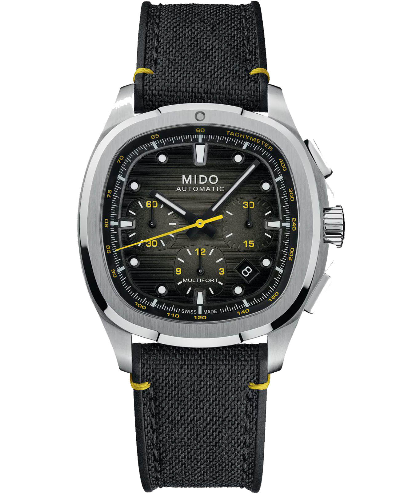 Мужские механические швейцарские часы Mido Multifort TV Chronograph M049.527.11.081.00, механический механизм с высокой точностью. Сапфировое стеклоСапфировое стеклоПрочный и надёжный материал из кристалла сапфира синтетического происхождения, характеризующийся особой твёрдостью и устойчивостью к царапинам и повреждениям. устойчивое к появлению царапин, обладающее высокой прозрачностью. Корпус часов изготовлен из нержавеющей стали. В механизм внедрена пружина баланса Nivachron™Nivachron™Специально разработанный инновационный сплав Nivachron™ повышает устойчивость часов к воздействию магнитных полей.. Стрелки с люминесцентным покрытиемЛюминесцентное покрытиеПозволяет считывать показания времени в темноте. Производители наносят на стрелки, часовые индексы, безель или поверхность циферблата светонакопительный состав, дающий холодное свечение.. Окошко даты в положении между 4 и 6 часами. Класс водозащиты: 100 метров, позволит плавать, нырять и заниматься другими водными видами спорта. Стальной браслет на раскладной застёжкеРаскладная застёжкаТакой тип застёжки используется только на браслетах из металла. Она никогда не раскрывается полностью, происходит разделение на 2 и более частей. Раскладывающая застёжка снизит вероятность потери часов к минимуму.. Часы с функциями хронографаХронографФункция позволяет измерять отрезки времени с особой точностью: часы, минуты, секунды. Верным признаком хронографа является наличие на циферблате 3 дополнительных окошек-счётчиков. и тахиметраТахиметрРазмеченная шкала, располагается на ободке или безеле часов. Тахиметр позволяет рассчитать скорость на определённом участке пути, расстояние измеряется в километрах или милях..Поставляются с дополнительным ремешком, что обеспечивает еще большую универсальность и комфорт.