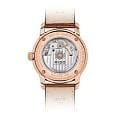 Сквозь прозрачную заднюю крышку можно любоваться работой механизма и тонкой отделкой. Водозащита до 50 метров делает модель практичным спутником в повседневной жизни, сохраняя при этом её утончённый характер.