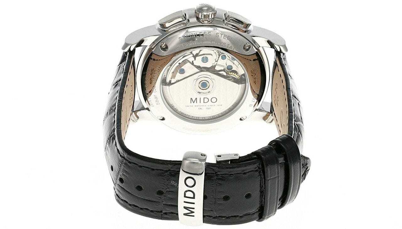 Швейцарские мужские наручные часы Mido Baroncelli 8607.4.M1.42, механический механизм (автоматический калибр) с высокой точностью. Сапфировое стеклоСапфировое стеклоПрочный и надёжный материал из кристалла сапфира синтетического происхождения, характеризующийся особой твёрдостью и устойчивостью к царапинам и повреждениям. устойчивое к появлению царапин, обладающее высокой прозрачностью. Класс водозащиты: 50 метров, позволит защитить корпус от случайных брызг или капель дождя. Корпус часов изготовлен из стали, серебристого цвета. В модели есть хронографХронографФункция позволяет измерять отрезки времени с особой точностью: часы, минуты, секунды. Верным признаком хронографа является наличие на циферблате 3 дополнительных окошек-счётчиков., 12-часовой счетчик расположен на 6 часов, 30-минутный на 12 часов и малая секунда на 9 часов. Центральная стрелка-указатель даты, апертура месяца и дня недели лаконично расположена на 12 часов, индикатор фазы луны.
