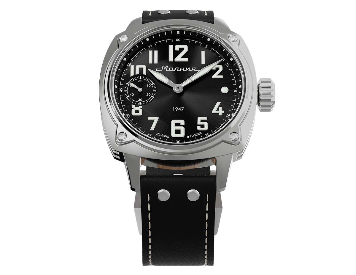 Мужские механические часы с ручным подзаводом — это аксессуар от легендарного бренда «МОЛНИЯ», созданный на Челябинском часовом заводе. Корпус диаметром 42 мм выполнен из нержавеющей стали 316L с зеркальной полировкой. БезельБезельВнешний ободок, закрепляющий стекло. В спортивных часах так называется поворотное кольцо с делениями на циферблате, выполняет роль таймера – замеряет отрезки времени на шкале. Неподвижный безель – элемент декора. Однонаправленно вращающийся безель на дайверских часах позволяет фиксировать моменты погружения и выныривания на поверхность. также выполнен из стали с зеркальной отделкой. Циферблат чёрного цвета оформлен индексами и стрелками. Малая секундная стрелка вынесена на позицию 9 часов. Стрелки и метки с люминесцентным покрытиемЛюминесцентное покрытиеПозволяет считывать показания времени в темноте. Производители наносят на стрелки, часовые индексы, безель или поверхность циферблата светонакопительный состав, дающий холодное свечение. Super-LumiNova, обеспечивающим хорошую читаемость в темноте. Циферблат защищён сапфировым стекломСапфировое стеклоПрочный и надёжный материал из кристалла сапфира синтетического происхождения, характеризующийся особой твёрдостью и устойчивостью к царапинам и повреждениям. с антибликовым покрытиемАнтибликовое покрытиеСлой оксида металла в 0,13-0,3 микрон, благодаря которому стекло часов не бликует и не отражает свет. Антибликовое покрытие уменьшает отражение света в 10 раз, обеспечивая отличную читаемость показателей циферблата.. Механизм — мануфактурный калибр 3603, собранный вручную, с запасом хода до 40 часов. Прозрачная задняя крышка позволяет наблюдать за работой механизма. Часы оснащены кожаным ремешком чёрного цвета с белой отстрочкой и классической пряжкой. Водонепроницаемость 100 м позволяет использовать часы для плавания и повседневного ношения. Идеальный выбор для тех, кто ценит российское качество и традиции.