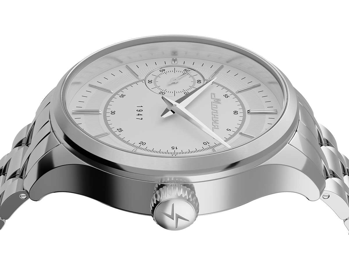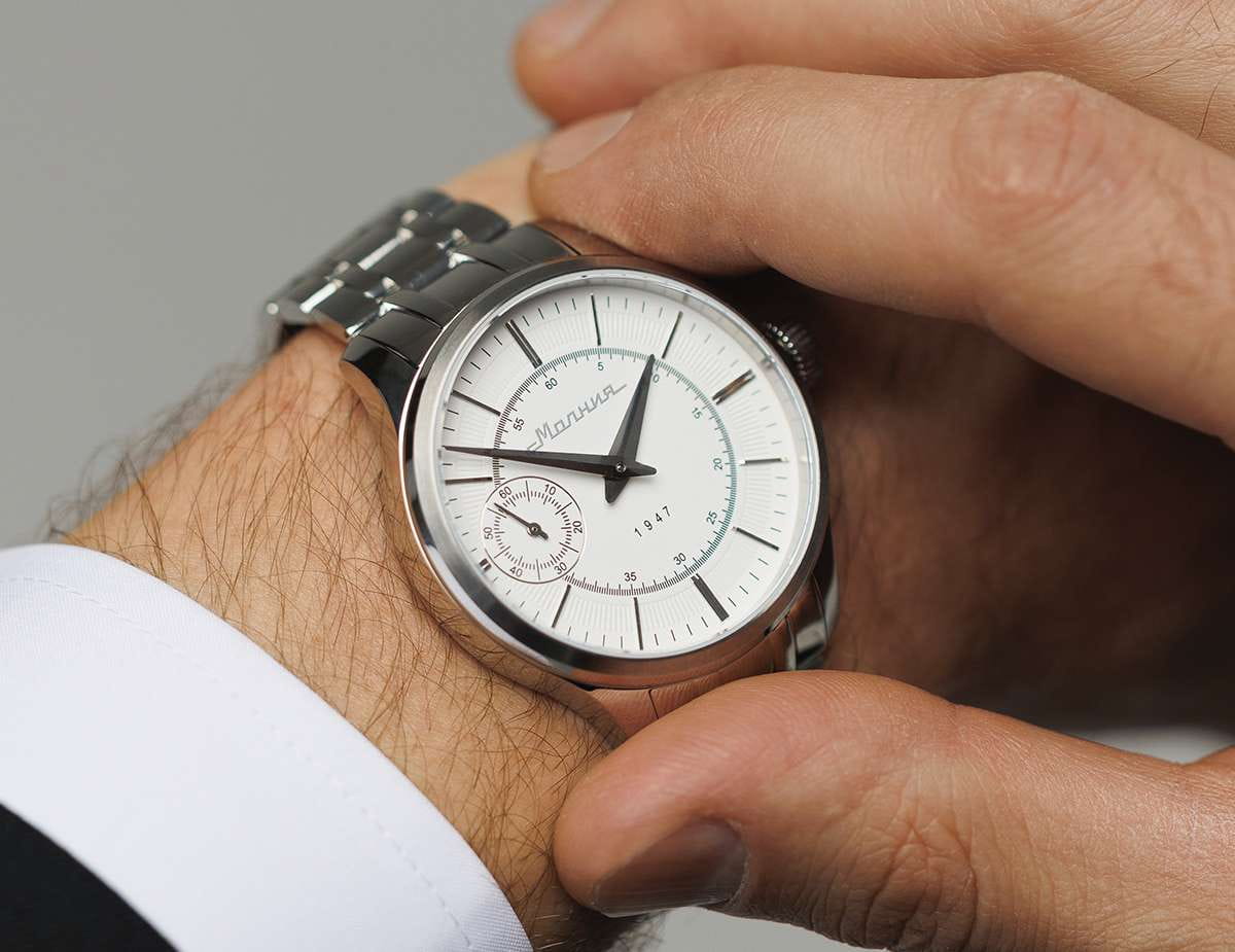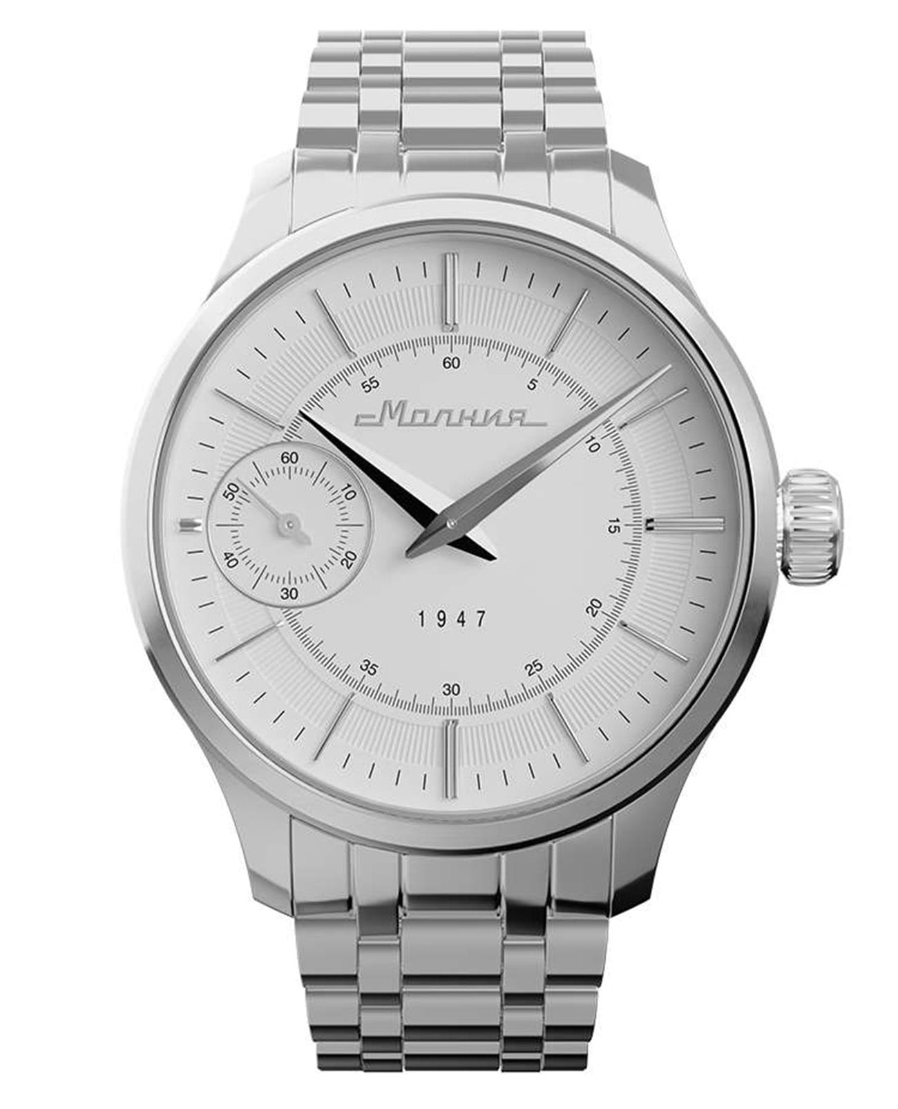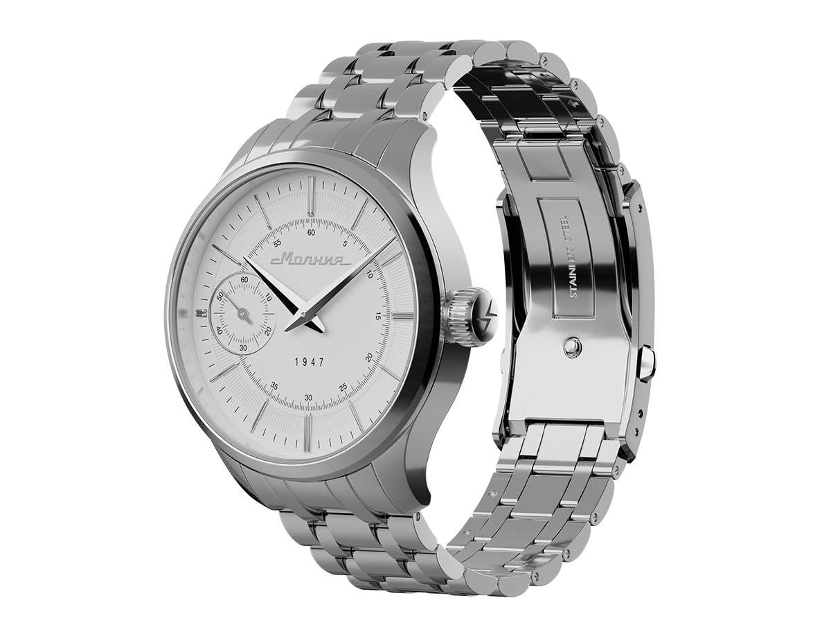 Мужские механические часы с ручным подзаводом — это аксессуар от легендарного бренда «МОЛНИЯ», созданный на Челябинском часовом заводе. Корпус диаметром 41 мм выполнен из нержавеющей стали 316L с зеркальной полировкой. БезельБезельВнешний ободок, закрепляющий стекло. В спортивных часах так называется поворотное кольцо с делениями на циферблате, выполняет роль таймера – замеряет отрезки времени на шкале. Неподвижный безель – элемент декора. Однонаправленно вращающийся безель на дайверских часах позволяет фиксировать моменты погружения и выныривания на поверхность. также выполнен из стали с зеркальной отделкой. Циферблат белого цвета оформлен индексами и стрелками. Малая секундная стрелка вынесена на позицию 9 часов. Циферблат защищён сапфировым стекломСапфировое стеклоПрочный и надёжный материал из кристалла сапфира синтетического происхождения, характеризующийся особой твёрдостью и устойчивостью к царапинам и повреждениям. толщиной 2 мм. Механизм — мануфактурный калибр 3603, собранный вручную, с запасом хода до 40 часов. Прозрачная задняя крышка позволяет наблюдать за работой механизма. Часы оснащены стальным браслетом с раскладной застёжкойРаскладная застёжкаТакой тип застёжки используется только на браслетах из металла. Она никогда не раскрывается полностью, происходит разделение на 2 и более частей. Раскладывающая застёжка снизит вероятность потери часов к минимуму. с кнопочным открытием и системой быстрой замены. Водонепроницаемость 50 м позволяет использовать часы в повседневных условиях. Идеальный выбор для тех, кто ценит российское качество и традиции.