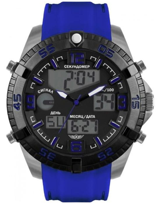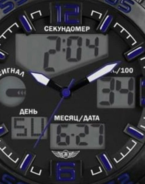 Часы оснащены японским кварцевым механизмом с аналогово-цифровой индикацией, обеспечивая точный ход и дополнительные возможности измерения времени.  Циферблат защищён минеральным стекломМинеральное стеклоМинеральное стекло представляет собой искусственно выращенный минерал кварца. Такое стекло отличается особой устойчивостью к повреждениям и царапинам. Уступает по некоторым качествам сапфировому стеклу., устойчивым к царапинам.  Установлена классическая застёжка-пряжка, обеспечивая надёжную фиксацию на запястье.  Модель обладает водонепроницаемостью до 100 метров, что делает её подходящей для плавания и сноркелинга.