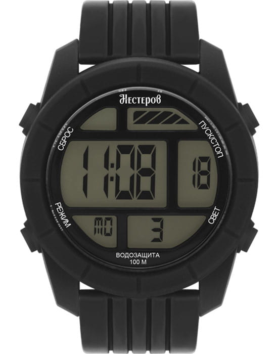 Мужские российские электронные часы Нестеров H2578A38-15E, электронный механизм с высокой точностью. Класс водозащиты: 30 метров, позволит защитить корпус от случайных брызг или капель дождя. Корпус часов изготовлен из пластика, черного цвета.