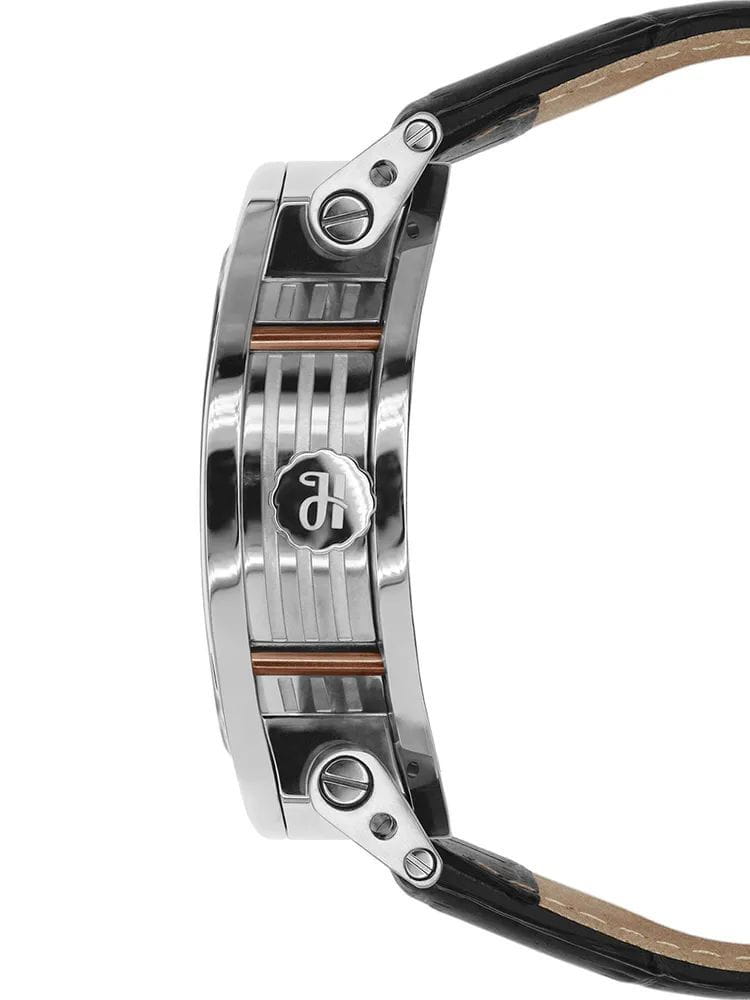 Ремешок выполнен из натуральной кожи коричневого цвета, обеспечивая комфорт при носке. Толщина корпуса составляет 14 мм, что придаёт часам солидный вид.