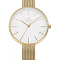 Модель Viol Gold отличается миннималистичным дизайном. Белый циферблат имеет контрастные метки и стрелки. Привлекательным элементом стал браслет миланского плетения. Японский кварцевый механизм. Батарейка без свинцовых и ртутных примесей. Корпус из стали 316L. Золотистое IP-покрытиеIP-покрытиеМетод ионного напыления. Демонстрирует повышенную устойчивость к истиранию, окислению и химическим веществам. Под воздействием высокого давления и температуры около 1500°C молекулы металла надёжно соединяются с частицами корпуса часов..
