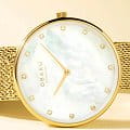 Женские наручные кварцевые часы с минеральным стекломМинеральное стеклоМинеральное стекло представляет собой искусственно выращенный минерал кварца. Такое стекло отличается особой устойчивостью к повреждениям и царапинам. Уступает по некоторым качествам сапфировому стеклу. Obaku Mesh V288LXGWHG, кварцевый механизм с высокой точностью. Класс водозащиты: 30 метров, позволит защитить корпус от случайных брызг или капель дождя. Корпус часов изготовлен из стали с IP-покрытиемIP-покрытиеМетод ионного напыления. Демонстрирует повышенную устойчивость к истиранию, окислению и химическим веществам. Под воздействием высокого давления и температуры около 1500°C молекулы металла надёжно соединяются с частицами корпуса часов.. Стальной браслет выполнен в технике миланского плетения на раскладной застёжкеРаскладная застёжкаТакой тип застёжки используется только на браслетах из металла. Она никогда не раскрывается полностью, происходит разделение на 2 и более частей. Раскладывающая застёжка снизит вероятность потери часов к минимуму. с IP-покрытиемIP-покрытиеМетод ионного напыления. Демонстрирует повышенную устойчивость к истиранию, окислению и химическим веществам. Под воздействием высокого давления и температуры около 1500°C молекулы металла надёжно соединяются с частицами корпуса часов.. Циферблат инкрустирован кристаллами.