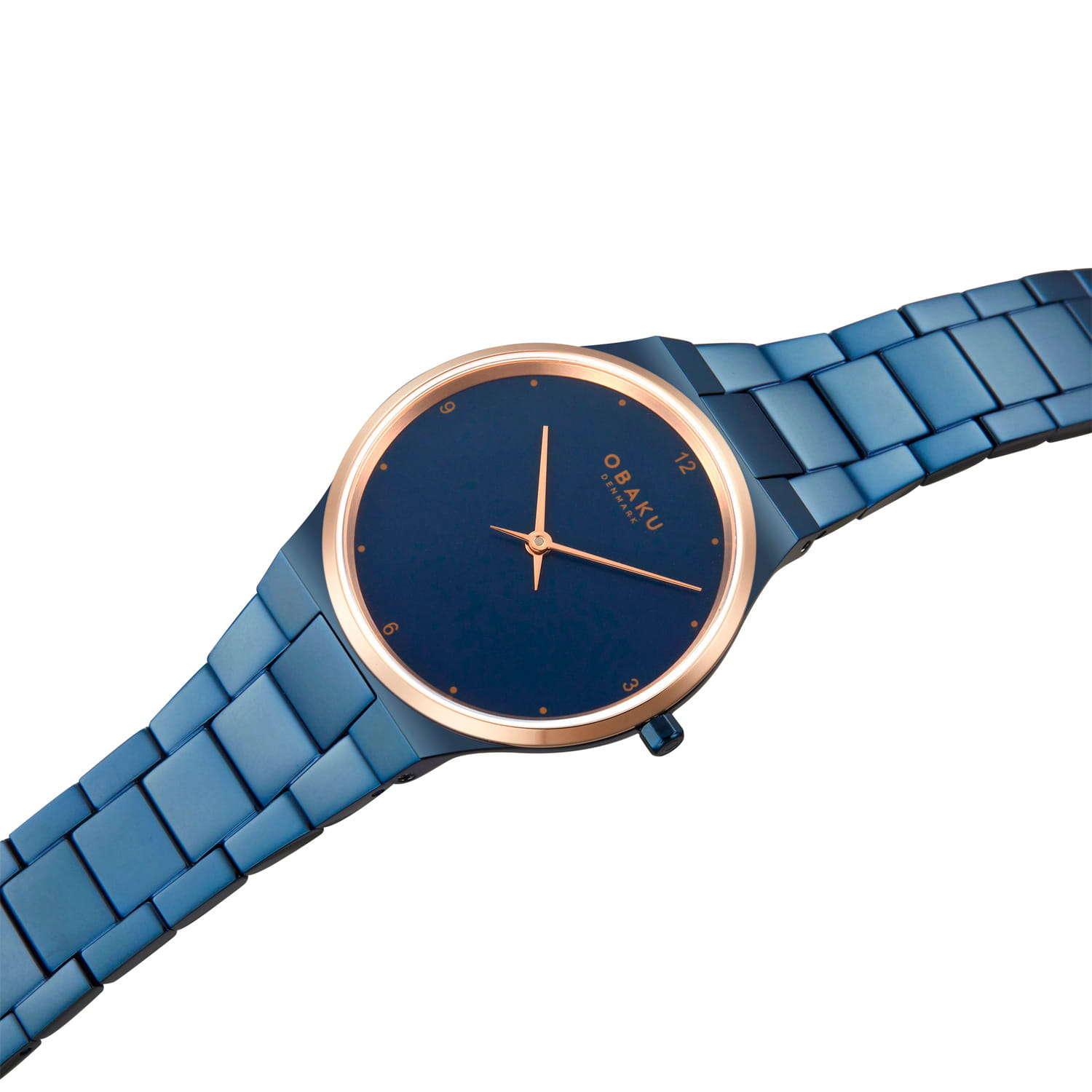 Часы Obaku Serviet V305LXSLSL— это элегантный женский аксессуар, который сочетает минималистичный дизайн и высокое качество. Корпус диаметром 32 мм выполнен из нержавеющей стали с PVD-покрытиемPVDУльтратонкое покрытие наносится в технике вакуумного напыления, сочетает в себе нитрид титана особой прочности со слоем золота или оксида хрома. Несёт в себе декоративную или защитную функцию., что придаёт часам стильный и современный вид. Синий циферблат с аналоговой индикацией времени защищён сапфировым стекломСапфировое стеклоПрочный и надёжный материал из кристалла сапфира синтетического происхождения, характеризующийся особой твёрдостью и устойчивостью к царапинам и повреждениям., устойчивым к царапинам. БезельБезельВнешний ободок, закрепляющий стекло. В спортивных часах так называется поворотное кольцо с делениями на циферблате, выполняет роль таймера – замеряет отрезки времени на шкале. Неподвижный безель – элемент декора. Однонаправленно вращающийся безель на дайверских часах позволяет фиксировать моменты погружения и выныривания на поверхность. с PVD-покрытиемPVDУльтратонкое покрытие наносится в технике вакуумного напыления, сочетает в себе нитрид титана особой прочности со слоем золота или оксида хрома. Несёт в себе декоративную или защитную функцию..