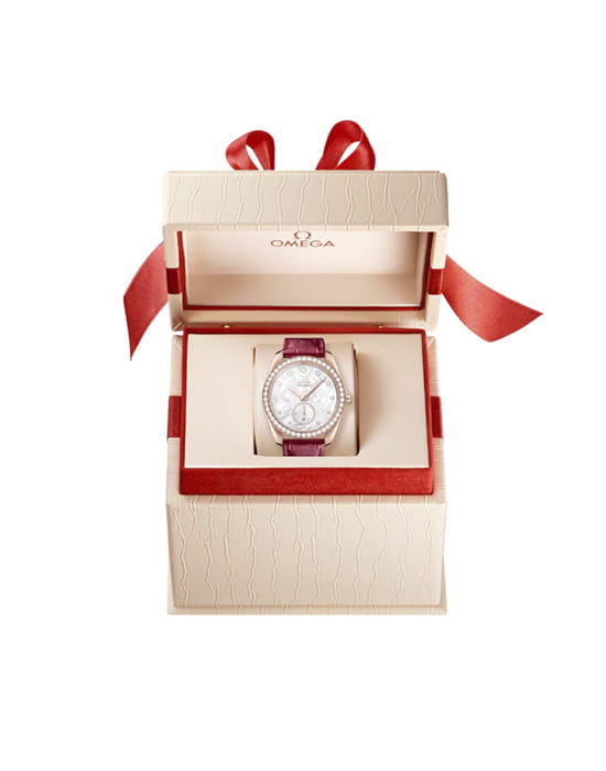 Omega Seamaster Aqua Terra выполнены в симметричном корпусе из 18K Sedna™ золота с волновым узором на задней крышке. Безель украшен бриллиантами, а циферблат дополнен окошком даты на 6 часах и малым секундным циферблатом с кольцом из 18К Sedna™ золота, инкрустированным бриллиантами. Стрелки и метки оснащены люминесцентным покрытиемЛюминесцентное покрытиеПозволяет считывать показания времени в темноте. Производители наносят на стрелки, часовые индексы, безель или поверхность циферблата светонакопительный состав, дающий холодное свечение. для лучшей читаемости в темноте. Индексы выполнены в виде бриллиантов, установленных в держатели из 18К Sedna™ золота. Калибр Omega 8803 сертифицирован как Master Chronometer — гарантия высочайшей точности и устойчивости к магнитным полям. Запас хода составляет 55 часов. Защиту циферблата обеспечивает сапфировое стеклоСапфировое стеклоПрочный и надёжный материал из кристалла сапфира синтетического происхождения, характеризующийся особой твёрдостью и устойчивостью к царапинам и повреждениям. с антибликовым покрытиемАнтибликовое покрытиеСлой оксида металла в 0,13-0,3 микрон, благодаря которому стекло часов не бликует и не отражает свет. Антибликовое покрытие уменьшает отражение света в 10 раз, обеспечивая отличную читаемость показателей циферблата. с обеих сторон. Водозащита позволяет использовать часы в воде без риска повреждения. Диаметр корпуса — 38 мм, между "ушками" — 19 мм, толщина — 12.7 мм. Часы установлены на кожаный ремешок. Вес модели — около 111 грамм. Это сочетание премиального качества, технологичности и классического дизайна.