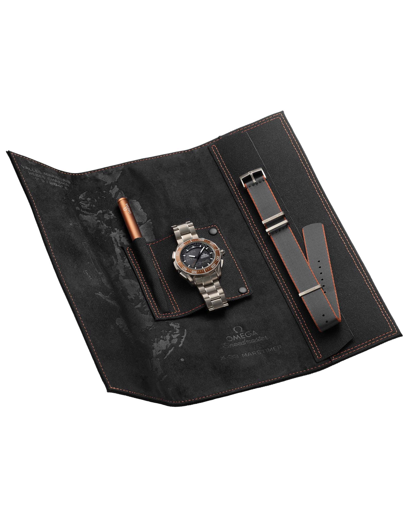OMEGA Speedmaster X-33 Marstimer — революционный хронограф, созданный в коллаборации с Европейским космическим агентством (ESA), воплощает дух межпланетных исследований. 45-мм корпус из титана Grade 2 оснащен инновационным микроконтроллером, вычисляющим истинное солнечное время как на Земле, так и на Марсе, учитывая, что марсианские сутки длиннее на 2,7%. Функция солнечного компаса с беспрецедентной точностью определяет истинный север на обеих планетах, а циферблат отображает солнечную долготу Марса и среднее время для трех локаций (главный меридиан + две выбранные пользователем). Классический черный циферблат с контрастными аналоговыми и цифровыми индикаторами украшен символами Земли и Марса для интуитивной навигации. БезельБезельВнешний ободок, закрепляющий стекло. В спортивных часах так называется поворотное кольцо с делениями на циферблате, выполняет роль таймера – замеряет отрезки времени на шкале. Неподвижный безель – элемент декора. Однонаправленно вращающийся безель на дайверских часах позволяет фиксировать моменты погружения и выныривания на поверхность. из оксалатного анодированного алюминия цвета красного гематита (марсианского минерала) дополнен градиентной секундной стрелкой, переходящей от марсианского оттенка к черному. На задней крышке — фирменный морской конёк, надписи «SPEEDMASTER X-33 MARSTIMER» и «ESA TESTED AND QUALIFIED», подчеркивающие космическую сертификацию. Часы работают на калибре OMEGA 5622 и поставляются с титановым браслетом (Grade 2/5), который можно заменить на ремень NATOРемешок NATOРемешок NATO — это прочный, универсальный и сменный часовой ремешок, изначально созданный для военных. Он изготовлен из нейлона или другого прочного материала и имеет уникальную конструкцию, которая позволяет часам оставаться на запястье даже в случае поломки одной из прикрепляющих точек. из специального набора. Футляр-тубус с изображением ущелья Хебес на Марсе завершает этот межпланетный шедевр.