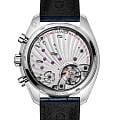 Chronoscope возрождает дух винтажных хронографов 1940-х, переосмысливая их через призму культового стиля Speedmaster. 43-мм корпус из нержавеющей стали с синим безелемБезельВнешний ободок, закрепляющий стекло. В спортивных часах так называется поворотное кольцо с делениями на циферблате, выполняет роль таймера – замеряет отрезки времени на шкале. Неподвижный безель – элемент декора. Однонаправленно вращающийся безель на дайверских часах позволяет фиксировать моменты погружения и выныривания на поверхность. из анодированного алюминия обрамляет серебристый циферблат, украшенный спиралевидным узором. Синие стрелки в форме листьев и арабские цифры создают элегантный контраст, а три исторические шкалы в форме улитки - тахиметрическая, пульсометрическая и телеметрическая - добавляют функциональности. Часы дополнены синим кожаным ремешком, подчеркивая их винтажный характер, а калибр OMEGA Co-Axial Master Chronometer 9908 обеспечивает безупречную точность, соединяя традиции с современными технологиями. На позиции "9 часов" расположен секундный счетчик, в то время как на "3 часах" удобно разместились 60-минутный и 12-часовой индикаторы.
