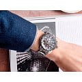 Класс водонепроницаемости 100 метров делает часы подходящими для плавания, ныряния и занятий другими водными видами спорта. Стальной браслет с раскладной застёжкойРаскладная застёжкаТакой тип застёжки используется только на браслетах из металла. Она никогда не раскрывается полностью, происходит разделение на 2 и более частей. Раскладывающая застёжка снизит вероятность потери часов к минимуму. обеспечивает комфортное и надежное крепление на запястье, делая часы удобными для ежедневного ношения.