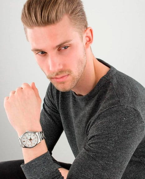 Часы Orient RA-AK0306S из коллекции Sun & Moon — это сочетание элегантного дизайна и функциональных особенностей. Корпус диаметром 41,5 мм выполнен из нержавеющей стали и защищён сапфировым стекломСапфировое стеклоПрочный и надёжный материал из кристалла сапфира синтетического происхождения, характеризующийся особой твёрдостью и устойчивостью к царапинам и повреждениям., обеспечивающим устойчивость к царапинам. Белый циферблат дополнен розовыми золотистыми стрелками и , который элегантно отображает смену времени суток. Индикатор дня недели в отдельном субциферблате и окошко даты на отметке «3 часа» делают модель ещё более функциональной. Автоматический механизм Orient Calibre F6B24 поддерживает функцию ручного завода и остановки секундной стрелки, обеспечивая точность и удобство использования. Запас хода составляет до 40 часов. Браслет из нержавеющей стали с раскладной застёжкойРаскладная застёжкаТакой тип застёжки используется только на браслетах из металла. Она никогда не раскрывается полностью, происходит разделение на 2 и более частей. Раскладывающая застёжка снизит вероятность потери часов к минимуму. гарантирует комфортное ношение и надёжную фиксацию на запястье. Водонепроницаемость до 50 метров защищает модель от случайных брызг и дождя. Orient RA-AK0306S — это выбор для тех, кто ценит японское качество, утончённый стиль и современные технологии.
