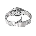 Корпус часов выполнен из качественной нержавеющей стали, а рифленая заводная головка придает изделию дополнительную элегантность. Прозрачная задняя крышка демонстрирует работу механизма. Частота колебаний составляет 21 600 полуколебаний в час, что обеспечивает высокую точность хода. Запас хода достигает 50 часов.