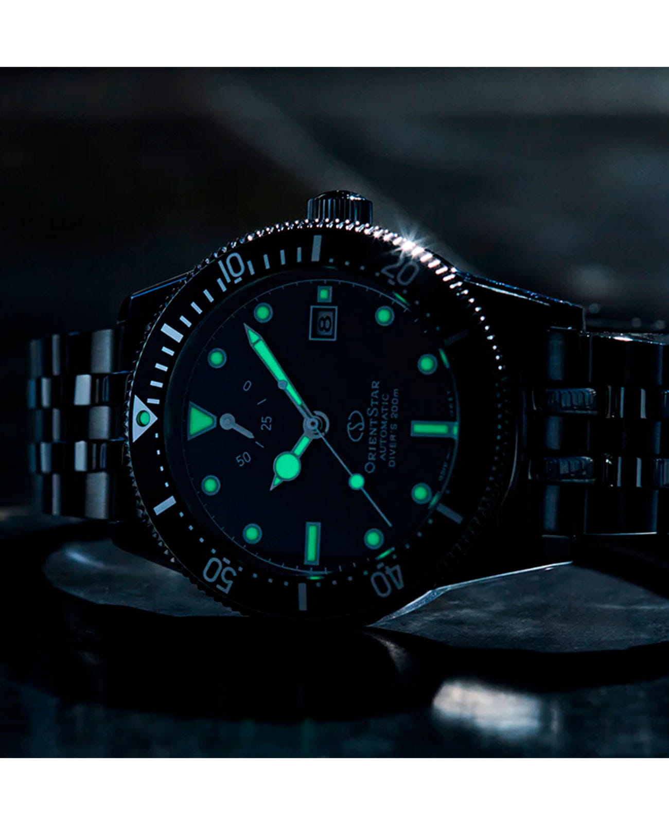 Часовые стрелки покрыты люминесцентным составомЛюминесцентное покрытиеПозволяет считывать показания времени в темноте. Производители наносят на стрелки, часовые индексы, безель или поверхность циферблата светонакопительный состав, дающий холодное свечение., что позволяет легко считывать показания даже в условиях слабого освещения. Циферблат с окошком даты в положении «3 часа» выполнен по технологии Sunray («солнечные лучи»), создающей эффект мягкого блеска и глубины.