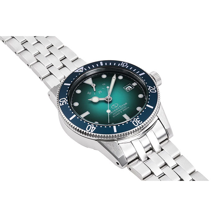 Модель Orient Star RE-AU0602E из серии Sports Diver — это профессиональные механические часы для подводных приключений и повседневного стиля с акцентом на надёжность и японскую эстетику. Корпус диаметром 41 мм выполнен из нержавеющей стали SUS316L, что гарантирует устойчивость к коррозии и высокую прочность. Односторонний безель из алюминия с насечками упрощает управление под водой, а заводная головка и задняя крышка завинчиваются для дополнительной защиты. Градиентный зелёный циферблат вдохновлён природными оттенками пещеры Рюсэндо. Часовые метки и стрелки покрыты люминесцентным покрытиемЛюминесцентное покрытиеПозволяет считывать показания времени в темноте. Производители наносят на стрелки, часовые индексы, безель или поверхность циферблата светонакопительный состав, дающий холодное свечение., обеспечивая отличную читаемость даже в полной темноте. На циферблате размещён индикатор запаса хода и окно даты. Циферблат защищён двойным выпуклым сапфировым стекломСапфировое стеклоПрочный и надёжный материал из кристалла сапфира синтетического происхождения, характеризующийся особой твёрдостью и устойчивостью к царапинам и повреждениям. с антибликовым покрытиемАнтибликовое покрытиеСлой оксида металла в 0,13-0,3 микрон, благодаря которому стекло часов не бликует и не отражает свет. Антибликовое покрытие уменьшает отражение света в 10 раз, обеспечивая отличную читаемость показателей циферблата.. Модель оснащена автоматическим калибром F6N47 с функцией ручного подзавода, остановкой секундной стрелки и запасом хода до 50 часов. Водонепроницаемость составляет 200 метров и соответствует стандарту ISO 6425, что делает часы полноценным дайвером. Браслет выполнен из стали с раскладной застёжкойРаскладная застёжкаТакой тип застёжки используется только на браслетах из металла. Она никогда не раскрывается полностью, происходит разделение на 2 и более частей. Раскладывающая застёжка снизит вероятность потери часов к минимуму. и системой удлинения для дайверского костюма. В комплекте предусмотрен дополнительный силиконовый ремешок. Orient Star RE-AU0602E — это надёжные, технически выверенные и эстетически продуманные часы, которые одинаково уверенно смотрятся под водой и в городских условиях.