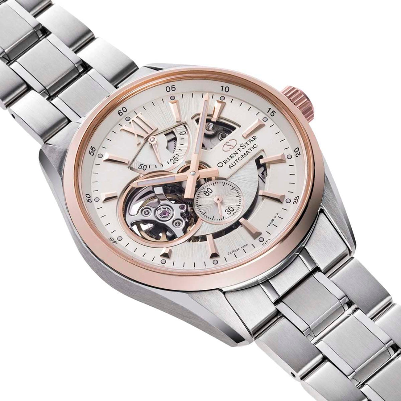 Orient Contemporary RE-AV0123G – искусство механики в современном исполнении Представляем вашему вниманию мужские механические часы с автоподзаводом Orient Star RE-AV0123G0 (RE-AV0123G00B), выполненные в духе современной классики. Эти часы привлекают внимание своим изысканным дизайном и высоким качеством исполнения. Основой часов служит прочный корпус и браслет из нержавеющей стали, придающие изделию солидность и долговечность. Безель украшен PVD-покрытиемPVDУльтратонкое покрытие наносится в технике вакуумного напыления, сочетает в себе нитрид титана особой прочности со слоем золота или оксида хрома. Несёт в себе декоративную или защитную функцию., что добавляет часам элегантности и завершает общий образ. Механизм часов оснащен 22 камнями и работает с частотой 21 600 полуколебаний в час, обеспечивая высокую точность хода. Автоподзавод обеспечивает запас хода до 50 часов, позволяя забыть о необходимости ежедневной ручной заводки. Функция stop-second дает возможность точно установить время. Особенностью данной модели является прозрачное окошко на циферблате, через которое можно наблюдать за работой сложного внутреннего механизма. Секундная стрелка расположена на отдельном циферблате, что добавляет часам уникальности и оригинальности. Циферблат выполнен по технологии Sunray («солнечные лучи»), создавая эффект игры света и тени. Часовые метки представлены в виде штрихов и римской цифры XII, что подчеркивает классический стиль часов. Класс водозащиты WR100 позволяет использовать часы не только в повседневной жизни, но и во время активного отдыха, включая плавание, ныряние и другие водные виды спорта. Часы способны выдерживать давление воды на глубине до 100 метров. Браслет из нержавеющей стали оснащен удобной раскладной застежкой раскладной застёжкеРаскладная застёжкаТакой тип застёжки используется только на браслетах из металла. Она никогда не раскрывается полностью, происходит разделение на 2 и более частей. Раскладывающая застёжка снизит вероятность потери часов к минимуму., обеспечивающей надежную фиксацию на запястье и облегчая процесс надевания/снимания часов.