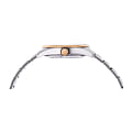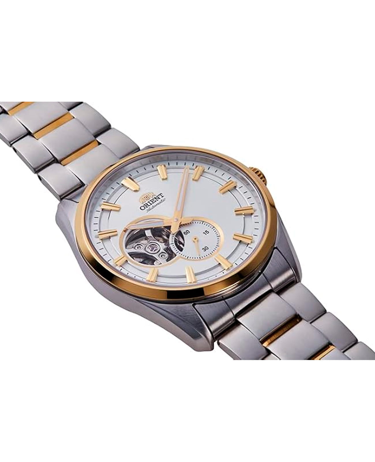 Часы Orient RN-AR0006S представляют собой стильную модель из коллекции Contemporary, сочетающую в себе классический дизайн и современные технологии. Это мужские механические часы с автоподзаводом, оснащённые калибром F6S22, который обеспечивает точность хода в пределах +25/-15 секунд в сутки и запас хода до 40 часов. Часы также поддерживают функцию ручного подзавода и остановки секундной стрелки (hacking stop), что позволяет точно синхронизировать время. Корпус часов выполнен из нержавеющей стали и имеет диаметр 40,8 мм при толщине 10,9 мм. Водонепроницаемость модели составляет 50 метров, что защищает часы от случайных брызг или капель дождя, но не предназначено для плавания или дайвинга. Часы оснащены сапфировым стекломСапфировое стеклоПрочный и надёжный материал из кристалла сапфира синтетического происхождения, характеризующийся особой твёрдостью и устойчивостью к царапинам и повреждениям., устойчивым к царапинам, и винтовой задней крышкой с прозрачным окном, позволяющим наблюдать за работой механизма. Циферблат выполнен в белом цвете с полускелетонным дизайном, который открывает вид на механизм в области 9 часов. На циферблате расположены светящиеся метки и стрелки с люминесцентным покрытиемЛюминесцентное покрытиеПозволяет считывать показания времени в темноте. Производители наносят на стрелки, часовые индексы, безель или поверхность циферблата светонакопительный состав, дающий холодное свечение., обеспечивающие хорошую видимость в темноте. Также предусмотрено окно малой секундной стрелки на позиции 6 часов, что добавляет часам уникальный и стильный вид. Браслет часов изготовлен из нержавеющей стали с частичным PVD-покрытиемPVDУльтратонкое покрытие наносится в технике вакуумного напыления, сочетает в себе нитрид титана особой прочности со слоем золота или оксида хрома. Несёт в себе декоративную или защитную функцию., что придаёт ему дополнительную износостойкость и элегантный внешний вид. Застёжка выполнена вна раскладной застёжкеРаскладная застёжкаТакой тип застёжки используется только на браслетах из металла. Она никогда не раскрывается полностью, происходит разделение на 2 и более частей. Раскладывающая застёжка снизит вероятность потери часов к минимуму., что обеспечивает надёжную фиксацию на запястье. Часы оснащены фиксированным безелемБезельВнешний ободок, закрепляющий стекло. В спортивных часах так называется поворотное кольцо с делениями на циферблате, выполняет роль таймера – замеряет отрезки времени на шкале. Неподвижный безель – элемент декора. Однонаправленно вращающийся безель на дайверских часах позволяет фиксировать моменты погружения и выныривания на поверхность. с PVD-покрытиемPVDУльтратонкое покрытие наносится в технике вакуумного напыления, сочетает в себе нитрид титана особой прочности со слоем золота или оксида хрома. Несёт в себе декоративную или защитную функцию., который подчёркивает их ретро-стиль и добавляет модели современный акцент .