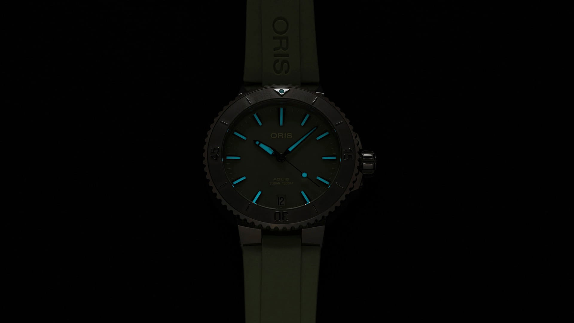 Многокомпонентный корпус из нержавеющей стали, вращающийся безельБезельВнешний ободок, закрепляющий стекло. В спортивных часах так называется поворотное кольцо с делениями на циферблате, выполняет роль таймера – замеряет отрезки времени на шкале. Неподвижный безель – элемент декора. Однонаправленно вращающийся безель на дайверских часах позволяет фиксировать моменты погружения и выныривания на поверхность. с минутной шкалой. Сапфировое стеклоСапфировое стеклоПрочный и надёжный материал из кристалла сапфира синтетического происхождения, характеризующийся особой твёрдостью и устойчивостью к царапинам и повреждениям., выпуклое с обеих сторон, внутреннее антибликовое покрытие. Прозрачная задняя крышка из минерального стеклаМинеральное стеклоМинеральное стекло представляет собой искусственно выращенный минерал кварца. Такое стекло отличается особой устойчивостью к повреждениям и царапинам. Уступает по некоторым качествам сапфировому стеклу.. Стрелки и метки с люминесцентным покрытиемЛюминесцентное покрытиеПозволяет считывать показания времени в темноте. Производители наносят на стрелки, часовые индексы, безель или поверхность циферблата светонакопительный состав, дающий холодное свечение.. Завинчивающаяся заводная головка. Каучуковый ремень.