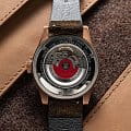 Многокомпонентный бронзовый корпус, стальная задняя крышка корпуса. Сапфировое стеклоСапфировое стеклоПрочный и надёжный материал из кристалла сапфира синтетического происхождения, характеризующийся особой твёрдостью и устойчивостью к царапинам и повреждениям., выпуклое с обеих сторон, внутреннее антибликовое покрытие. Нержавеющая сталь, завинчивающаяся прозрачная задняя крышка из минерального стеклаМинеральное стеклоМинеральное стекло представляет собой искусственно выращенный минерал кварца. Такое стекло отличается особой устойчивостью к повреждениям и царапинам. Уступает по некоторым качествам сапфировому стеклу.. Стрелки с люминесцентным покрытиемЛюминесцентное покрытиеПозволяет считывать показания времени в темноте. Производители наносят на стрелки, часовые индексы, безель или поверхность циферблата светонакопительный состав, дающий холодное свечение.. Кожаный ремень.