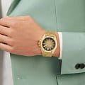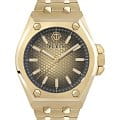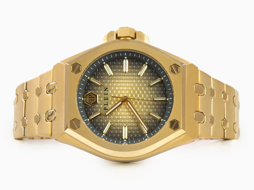 Современный стиль и безупречное исполнение сливаются в каждой детали этих брендовых часов, которые каждую секунду будут напоминать вам о ценности времени. Мужские часы с японским кварцевым механизмом. Круглый стальной корпус украшен знаковыми винтами. Циферблат с текстурой гексагон выполнен по технологии Sunray (солнечные лучи) и декорирован шестиугольным логотипом бренда в положении 12 часов. Метки в виде штрихов. Минеральное стеклоМинеральное стеклоМинеральное стекло представляет собой искусственно выращенный минерал кварца. Такое стекло отличается особой устойчивостью к повреждениям и царапинам. Уступает по некоторым качествам сапфировому стеклу. устойчивое к мелким механическим повреждениям. Граненая заводная головка с защитой. Стальной браслет с IP-покрытиемIP-покрытиеМетод ионного напыления. Демонстрирует повышенную устойчивость к истиранию, окислению и химическим веществам. Под воздействием высокого давления и температуры около 1500°C молекулы металла надёжно соединяются с частицами корпуса часов. на застёжке-бабочке с кнопкамиЗастёжка "бабочка"Такой вид застёжки дополняется предохранителями, помогающими избежать случайного раскрытия браслета. Обладают изящным исполнением. . Фирменная дизайнерская упаковка.