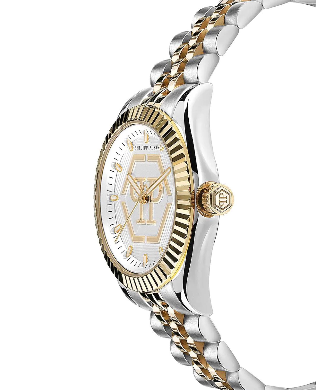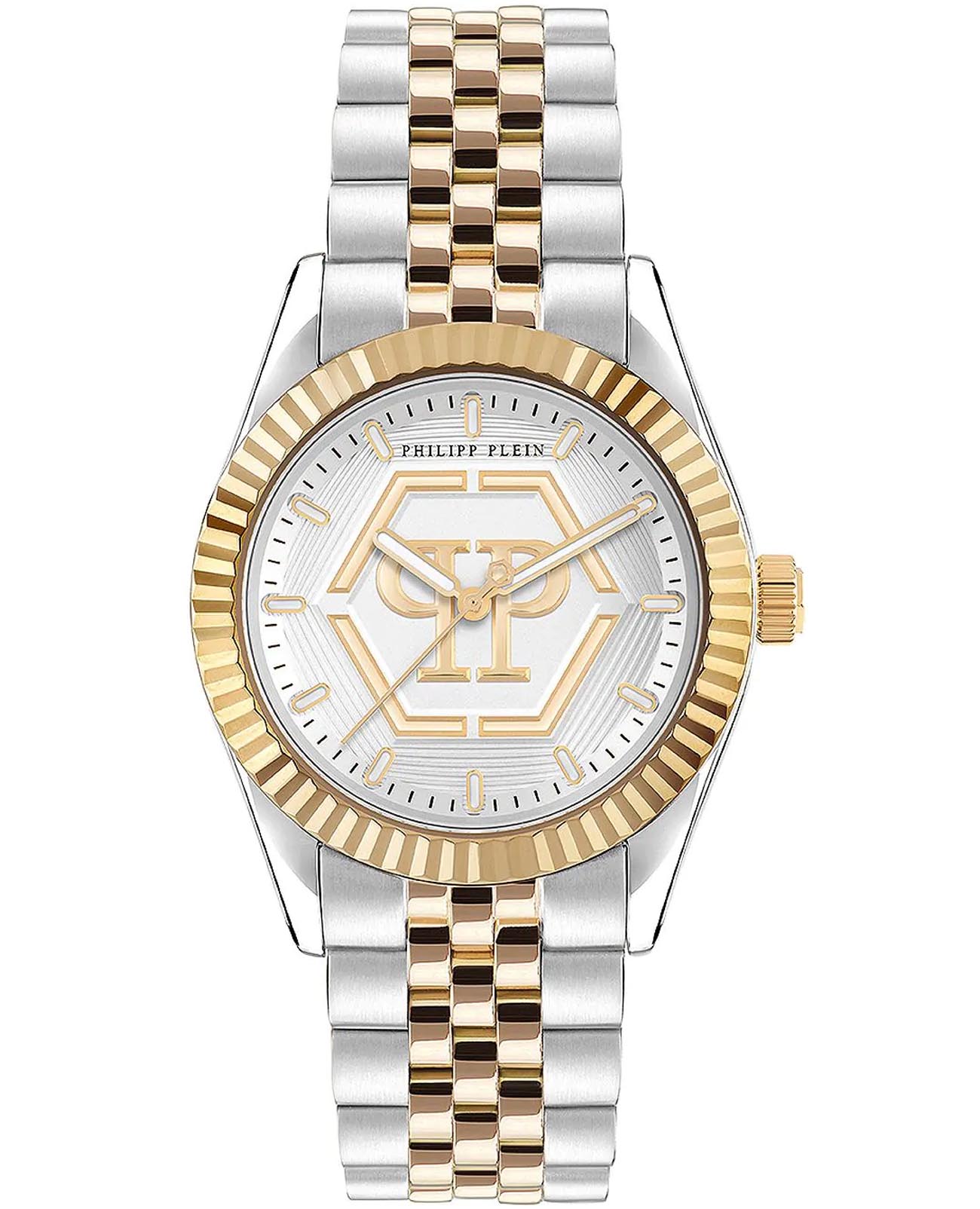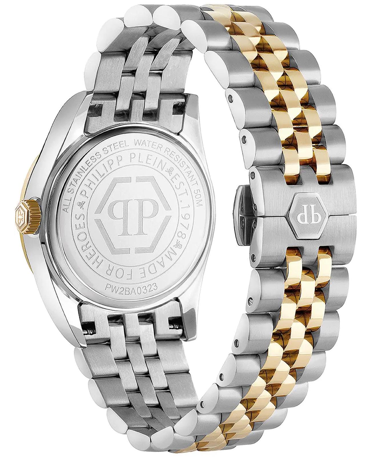 Стильные женские часы Philipp Plein Street Couture PW2BA0323 с надежным кварцевым механизмом. Корпус часов изготовлен из нержавеющей стали. Минеральное стеклоМинеральное стеклоМинеральное стекло представляет собой искусственно выращенный минерал кварца. Такое стекло отличается особой устойчивостью к повреждениям и царапинам. Уступает по некоторым качествам сапфировому стеклу. устойчивое к мелким механическим повреждениям. Влагозащита: 50 метров, позволит защитить корпус от случайных брызг или капель дождя. Стрелки и метки с люминесцентным покрытиемЛюминесцентное покрытиеПозволяет считывать показания времени в темноте. Производители наносят на стрелки, часовые индексы, безель или поверхность циферблата светонакопительный состав, дающий холодное свечение.. Стальной браслет на застёжке-бабочке с кнопкамиЗастёжка "бабочка"Такой вид застёжки дополняется предохранителями, помогающими избежать случайного раскрытия браслета. Обладают изящным исполнением. . БезельБезельВнешний ободок, закрепляющий стекло. В спортивных часах так называется поворотное кольцо с делениями на циферблате, выполняет роль таймера – замеряет отрезки времени на шкале. Неподвижный безель – элемент декора. Однонаправленно вращающийся безель на дайверских часах позволяет фиксировать моменты погружения и выныривания на поверхность. с IP-покрытиемIP-покрытиеМетод ионного напыления. Демонстрирует повышенную устойчивость к истиранию, окислению и химическим веществам. Под воздействием высокого давления и температуры около 1500°C молекулы металла надёжно соединяются с частицами корпуса часов..