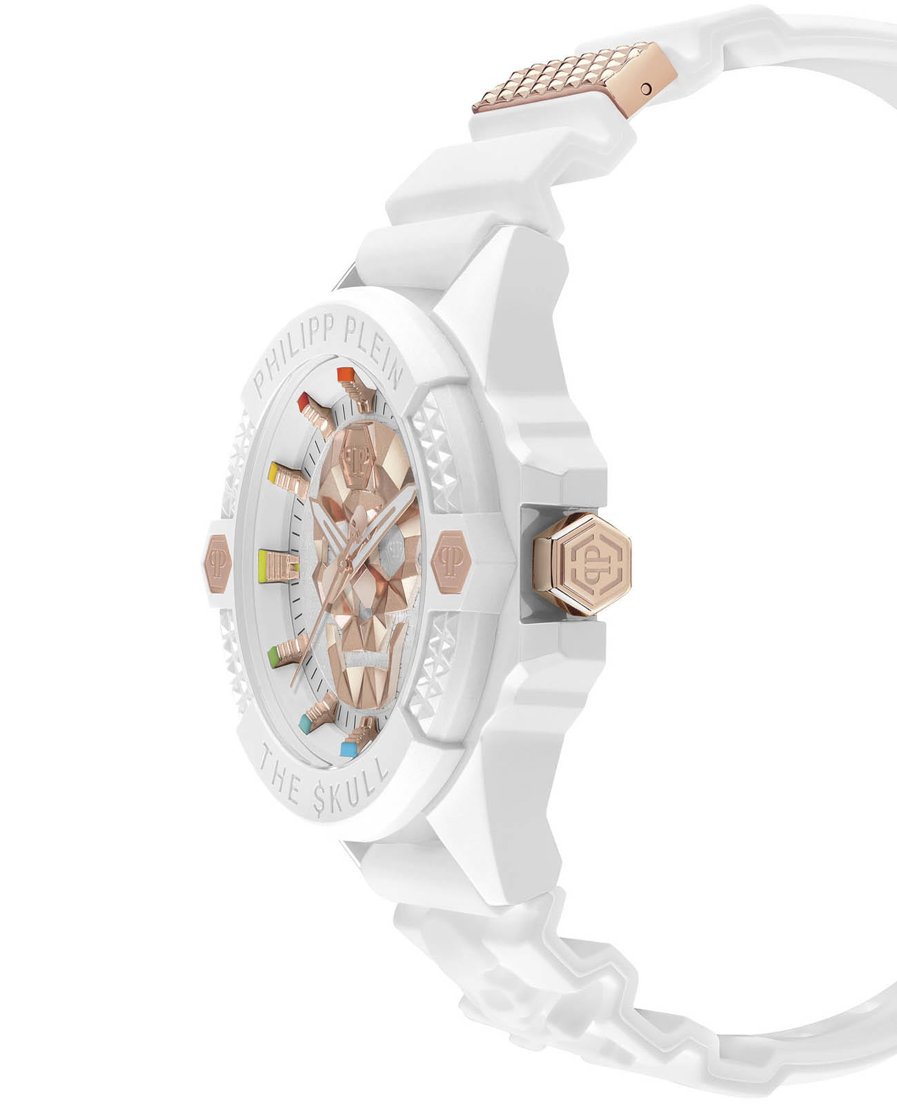 Мужские часы Philipp Plein The Skull Ecoceramic PWUBA0123, кварцевый механизм с высокой точностью. Класс водозащиты: 50 метров, позволит защитить корпус от случайных брызг или капель дождя. Корпус часов изготовлен из экокерамики. Минеральное стеклоМинеральное стеклоМинеральное стекло представляет собой искусственно выращенный минерал кварца. Такое стекло отличается особой устойчивостью к повреждениям и царапинам. Уступает по некоторым качествам сапфировому стеклу. устойчивое к мелким механическим повреждениям. Стрелки с люминесцентным покрытиемЛюминесцентное покрытиеПозволяет считывать показания времени в темноте. Производители наносят на стрелки, часовые индексы, безель или поверхность циферблата светонакопительный состав, дающий холодное свечение..