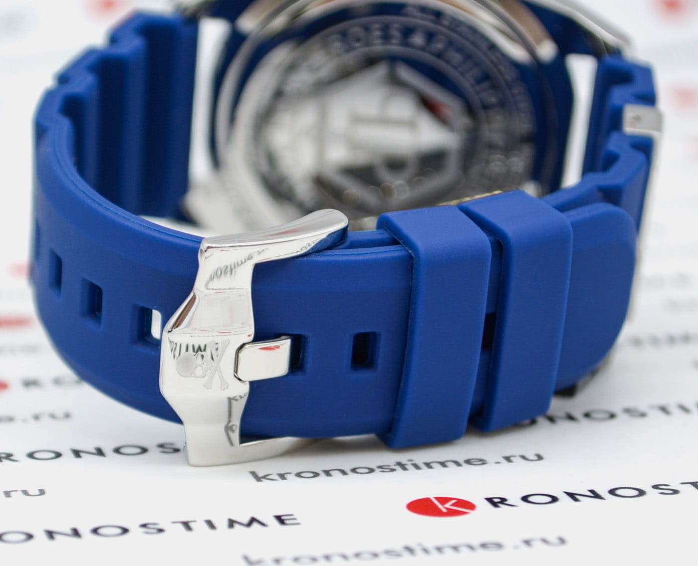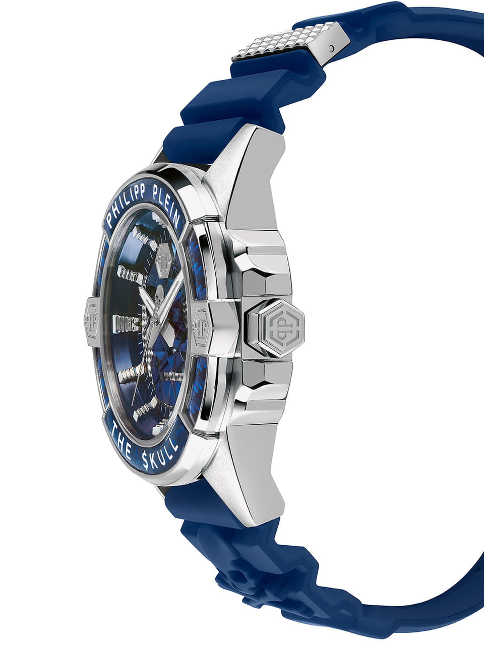 Мужские кварцевые часы с синим карбоновым покрытием циферблата Philipp Plein The Skull Carbon Fiber PWAAA1722, кварцевый механизм с высокой точностью. Класс водозащиты: 50 метров, позволит защитить корпус от случайных брызг или капель дождя. Круглый корпус выполнен из нержавеющей стали. Заводная головка с защитой. Синий силиконовый ремешок шириной 22 мм, стандартная застежка.