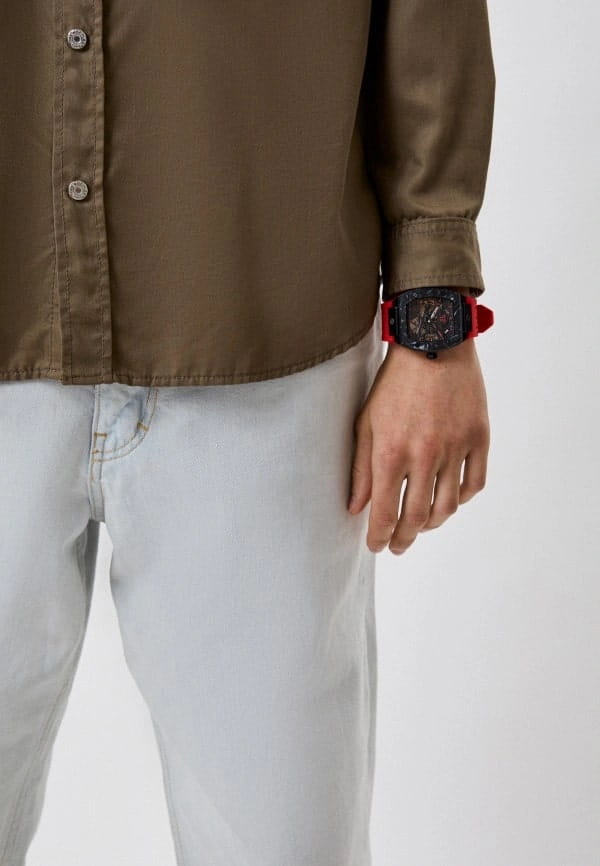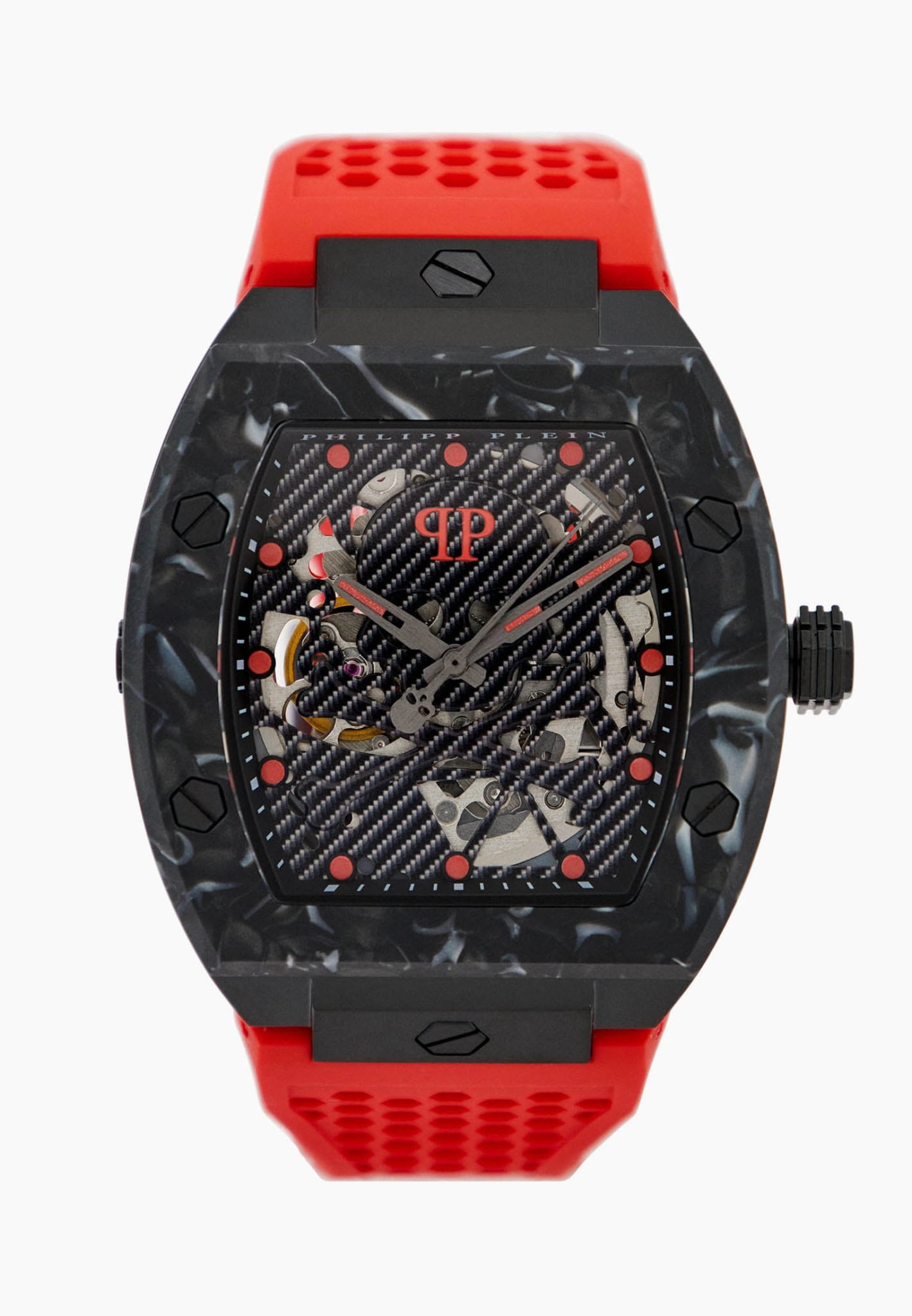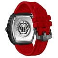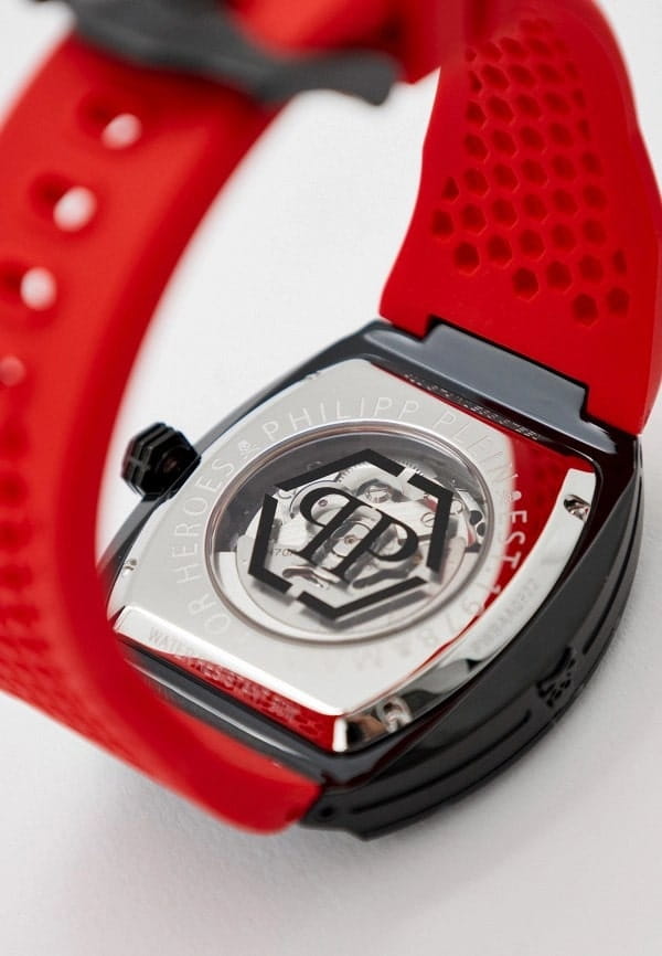 Механические мужские часы-скелетоны с минеральным стекломМинеральное стеклоМинеральное стекло представляет собой искусственно выращенный минерал кварца. Такое стекло отличается особой устойчивостью к повреждениям и царапинам. Уступает по некоторым качествам сапфировому стеклу. Philipp Plein The Skeleton Sport Master PWBAA0722, кварцевый механизм с высокой точностью. Класс водозащиты: 50 метров, позволит защитить корпус от случайных брызг или капель дождя. Корпус часов изготовлен из стали с IP-покрытиемIP-покрытиеМетод ионного напыления. Демонстрирует повышенную устойчивость к истиранию, окислению и химическим веществам. Под воздействием высокого давления и температуры около 1500°C молекулы металла надёжно соединяются с частицами корпуса часов.. Силиконовый ремешок на стандартной застёжке. Высококачественный силиконовый браслет обеспечивает высокий уровень комфорта. Стрелки и метки с люминесцентным покрытиемЛюминесцентное покрытиеПозволяет считывать показания времени в темноте. Производители наносят на стрелки, часовые индексы, безель или поверхность циферблата светонакопительный состав, дающий холодное свечение..