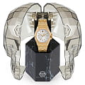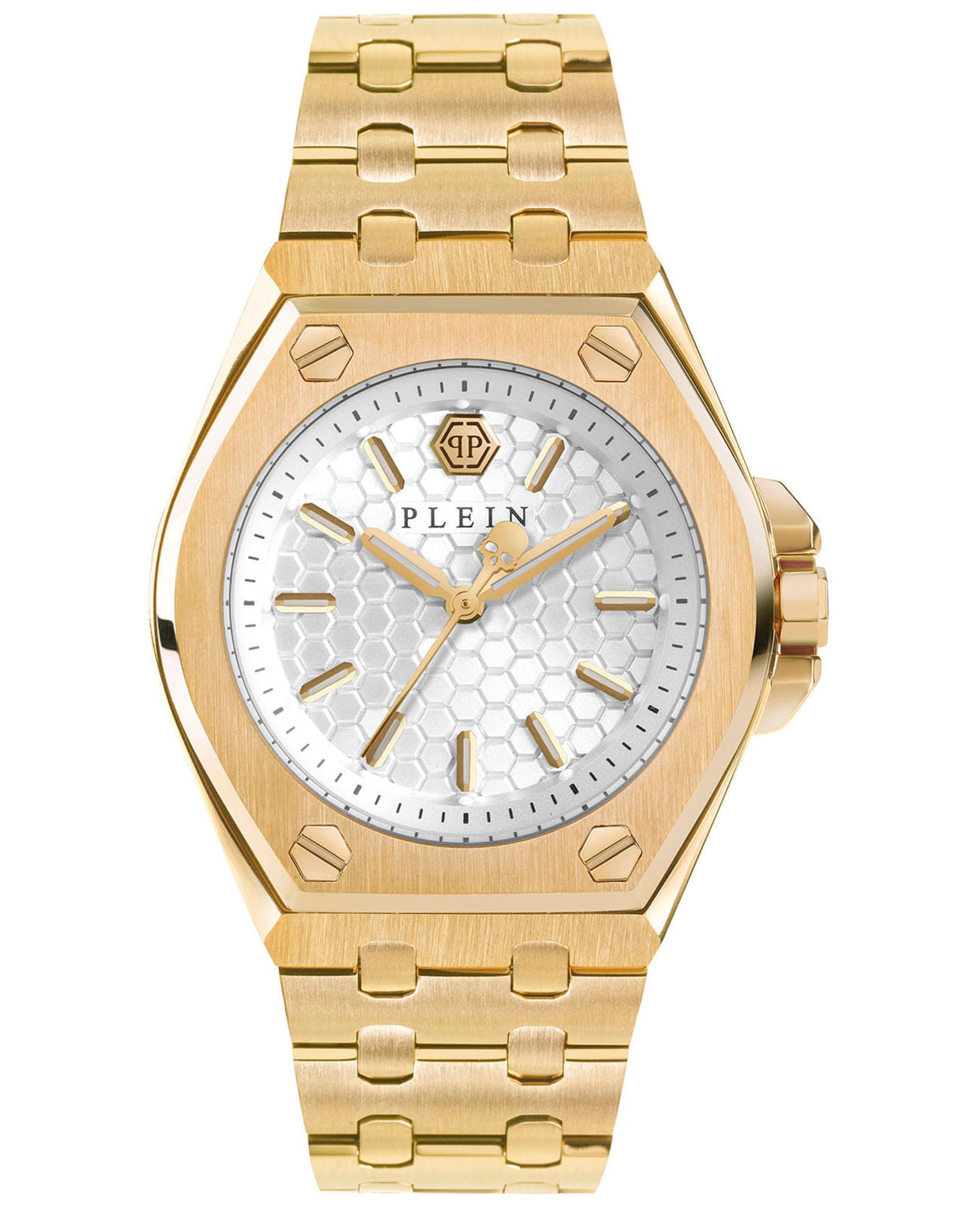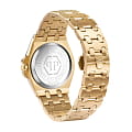 Женские немецкие кварцевые часы Philipp Plein Extreme Lady PWJAA0722, кварцевый механизм с высокой точностью. Класс водозащиты: 50 метров, позволит защитить корпус от случайных брызг или капель дождя. Корпус часов изготовлен из стали с IP-покрытиемIP-покрытиеМетод ионного напыления. Демонстрирует повышенную устойчивость к истиранию, окислению и химическим веществам. Под воздействием высокого давления и температуры около 1500°C молекулы металла надёжно соединяются с частицами корпуса часов. цвета желтое золото. Прочное минеральное стеклоМинеральное стеклоМинеральное стекло представляет собой искусственно выращенный минерал кварца. Такое стекло отличается особой устойчивостью к повреждениям и царапинам. Уступает по некоторым качествам сапфировому стеклу. устойчивое к мелким механическим повреждениям. Стальной браслет с IP-покрытиемIP-покрытиеМетод ионного напыления. Демонстрирует повышенную устойчивость к истиранию, окислению и химическим веществам. Под воздействием высокого давления и температуры около 1500°C молекулы металла надёжно соединяются с частицами корпуса часов. цвета желтое золота шириной 23 мм, раскладная застёжкаРаскладная застёжкаТакой тип застёжки используется только на браслетах из металла. Она никогда не раскрывается полностью, происходит разделение на 2 и более частей. Раскладывающая застёжка снизит вероятность потери часов к минимуму..