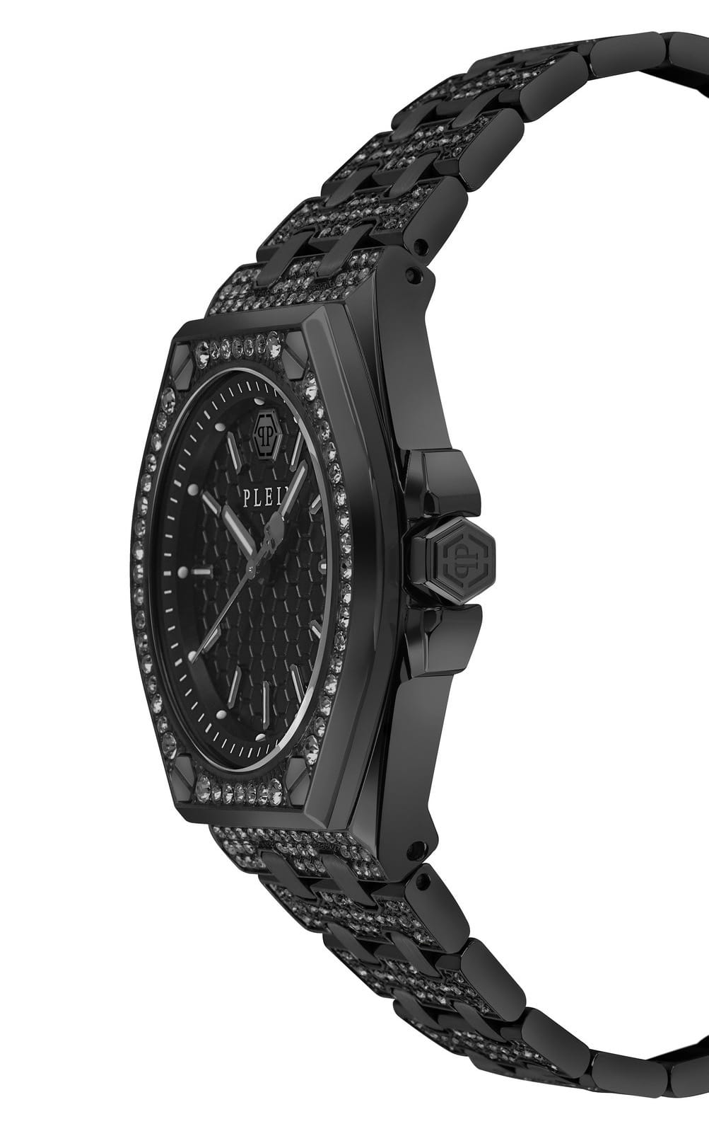 Женские немецкие кварцевые часы Philipp Plein Extreme Lady PWJAA1022, кварцевый механизм с высокой точностью. Класс водозащиты: 50 метров, позволит защитить корпус от случайных брызг или капель дождя. Корпус часов изготовлен из стали с IP-покрытиемIP-покрытиеМетод ионного напыления. Демонстрирует повышенную устойчивость к истиранию, окислению и химическим веществам. Под воздействием высокого давления и температуры около 1500°C молекулы металла надёжно соединяются с частицами корпуса часов.. Прочное минеральное стеклоМинеральное стеклоМинеральное стекло представляет собой искусственно выращенный минерал кварца. Такое стекло отличается особой устойчивостью к повреждениям и царапинам. Уступает по некоторым качествам сапфировому стеклу. устойчивое к мелким механическим повреждениям. Застёжка бабочка с кнопкамиЗастёжка "бабочка"Такой вид застёжки дополняется предохранителями, помогающими избежать случайного раскрытия браслета. Обладают изящным исполнением.