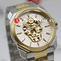Мужские кварцевые часы с фирменным изображением черепа Philipp Plein The Skull King PWLAA0722, кварцевый механизм с высокой точностью. Класс водозащиты: 50 метров, позволит защитить корпус от случайных брызг или капель дождя. Корпус и браслет часов изготовлены из стали с частичным IP-покрытиемIP-покрытиеМетод ионного напыления. Демонстрирует повышенную устойчивость к истиранию, окислению и химическим веществам. Под воздействием высокого давления и температуры около 1500°C молекулы металла надёжно соединяются с частицами корпуса часов. цвета желтое золото. Прочное минеральное стеклоМинеральное стеклоМинеральное стекло представляет собой искусственно выращенный минерал кварца. Такое стекло отличается особой устойчивостью к повреждениям и царапинам. Уступает по некоторым качествам сапфировому стеклу. устойчивое к мелким механическим повреждениям. Браслет дополняет застёжка-бабочка с кнопкамиЗастёжка "бабочка"Такой вид застёжки дополняется предохранителями, помогающими избежать случайного раскрытия браслета. Обладают изящным исполнением. .
