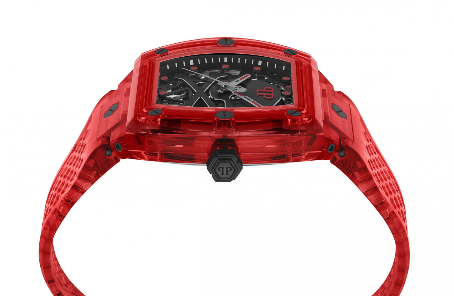 Philipp Plein The $keleton Crystal PWPTA0224 — это мужские автоматические часы, сочетающие смелый дизайн и функциональность. Корпус выполнен из прозрачного нейлона, что обеспечивает прочность и лёгкость конструкции. Размеры корпуса (44 мм в ширину и 56 мм в высоту) подчёркивают современный стиль часов. Минеральное стеклоМинеральное стеклоМинеральное стекло представляет собой искусственно выращенный минерал кварца. Такое стекло отличается особой устойчивостью к повреждениям и царапинам. Уступает по некоторым качествам сапфировому стеклу. защищает циферблат от царапин и повреждений. Скелетонизированный циферблат красного цвета демонстрирует сложность автоматического механизма. Чёткие стрелки и индексы обеспечивают удобство считывания времени. Часы оснащены автоматическим механизмом, который заводится от движения руки, не требуя батареи. Ремешок из красного перфорированного TPU (термополиуретана) гарантирует комфортное ношение. Классическая застёжка обеспечивает надёжную фиксацию. Водозащита до 5 ATM (50 метров) позволяет использовать часы в повседневной жизни. Philipp Plein The $keleton Crystal PWPTA0224 — идеальный выбор для мужчин, ценящих уникальный стиль, качество и техническое совершенство.