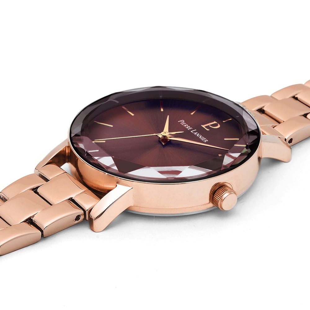 Женские кварцевые часы Pierre Lannier 012P988 — это стильный аксессуар, сочетающий элегантность французского дизайна с надёжностью и функциональностью. Модель выполнена из нержавеющей стали с IP-покрытиеIP-покрытиеМетод ионного напыления. Демонстрирует повышенную устойчивость к истиранию, окислению и химическим веществам. Под воздействием высокого давления и температуры около 1500°C молекулы металла надёжно соединяются с частицами корпуса часов., что придаёт ей благородный внешний вид и устойчивость к царапинам. Корпус диаметром 30 мм защищён минеральным стекломМинеральное стеклоМинеральное стекло представляет собой искусственно выращенный минерал кварца. Такое стекло отличается особой устойчивостью к повреждениям и царапинам. Уступает по некоторым качествам сапфировому стеклу., устойчивым к мелким механическим повреждениям. Циферблат дополнен штриховыми метками, а центральные стрелки обеспечивают точное отображение времени. Браслет из стали с покрытием оснащён стандартной застёжкой, что делает его удобным для ношения. Водонепроницаемость позволяет использовать модель в повседневных условиях — при мытье рук или под лёгким дождём. Эти часы станут универсальным аксессуаром для тех, кто ценит сочетание стиля, качества и французского мастерства — идеальный выбор для повседневной носки и торжественных случаев.