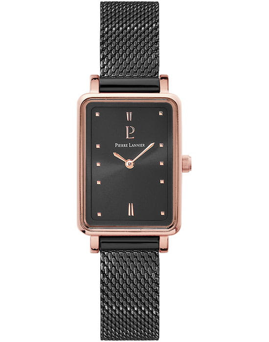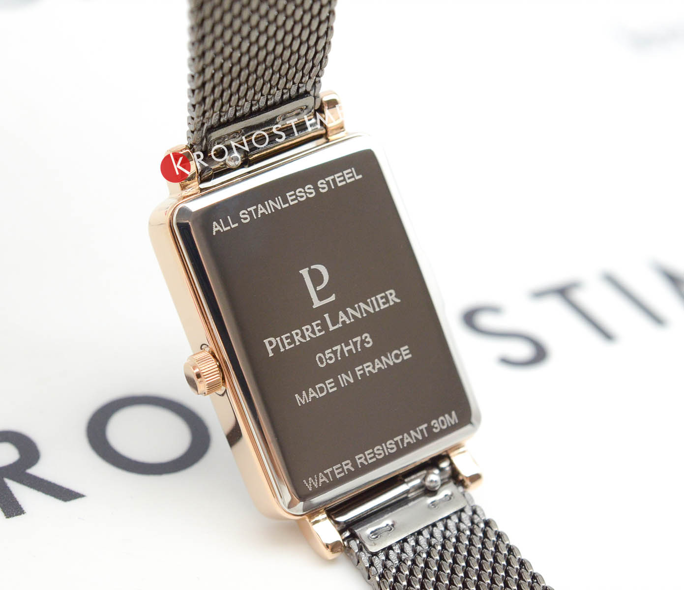 Женские  Pierre Lannier Ariane 057H739 Минеральное стеклоМинеральное стеклоМинеральное стекло представляет собой искусственно выращенный минерал кварца. Такое стекло отличается особой устойчивостью к повреждениям и царапинам. Уступает по некоторым качествам сапфировому стеклу. устойчивое к мелким механическим повреждениям. Центральные часовая, минутная и секундная стрелки. Корпус выполнен из полированной нержавеющей стали с IP-покрытиемIP-покрытиеМетод ионного напыления. Демонстрирует повышенную устойчивость к истиранию, окислению и химическим веществам. Под воздействием высокого давления и температуры около 1500°C молекулы металла надёжно соединяются с частицами корпуса часов... Водостойкость: 30 метров, позволит защитить корпус от случайных брызг или капель дождя. Размер корпуса составляет 21 х 28,4 мм, толщина 6,2 мм. Стальной браслет миланского плетения на раскладном замкеРаскладной замокДанный вариант застежки используется только на часах с металлическим браслетом. Отличительная особенность такого крепления в том, что длина браслета становится универсальной и вы можете самостоятельно отрегулировать нужный вам размер – застежка просто двигается по браслету часов. с IP-покрытиемIP-покрытиеМетод ионного напыления. Демонстрирует повышенную устойчивость к истиранию, окислению и химическим веществам. Под воздействием высокого давления и температуры около 1500°C молекулы металла надёжно соединяются с частицами корпуса часов..