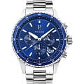 Мужские кварцевые часы Pierre Lannier Cronos 226G161. Часы хронографХронографФункция позволяет измерять отрезки времени с особой точностью: часы, минуты, секунды. Верным признаком хронографа является наличие на циферблате 3 дополнительных окошек-счётчиков. с секундомеромСекундомерСекундоме́р — прибор, способный измерять интервалы времени с точностью до долей секунды.. Минеральное стеклоМинеральное стеклоМинеральное стекло представляет собой искусственно выращенный минерал кварца. Такое стекло отличается особой устойчивостью к повреждениям и царапинам. Уступает по некоторым качествам сапфировому стеклу. устойчивое к мелким механическим повреждениям. Центральные часовая и минутная стрелки, секундная стрелка вынесена на малый циферблат. Окошко даты между 4 и 5 часам. Корпус и вращающийся безельБезельВнешний ободок, закрепляющий стекло. В спортивных часах так называется поворотное кольцо с делениями на циферблате, выполняет роль таймера – замеряет отрезки времени на шкале. Неподвижный безель – элемент декора. Однонаправленно вращающийся безель на дайверских часах позволяет фиксировать моменты погружения и выныривания на поверхность. из нержавеющей стали с IP-покрытиемIP-покрытиеМетод ионного напыления. Демонстрирует повышенную устойчивость к истиранию, окислению и химическим веществам. Под воздействием высокого давления и температуры около 1500°C молекулы металла надёжно соединяются с частицами корпуса часов.. Стрелки с люминесцентным покрытиемЛюминесцентное покрытиеПозволяет считывать показания времени в темноте. Производители наносят на стрелки, часовые индексы, безель или поверхность циферблата светонакопительный состав, дающий холодное свечение.. Водостойкость: 100 метров, позволит плавать, нырять и заниматься другими водными видами спорта. Стальной браслет с раскладной застёжкойРаскладная застёжкаТакой тип застёжки используется только на браслетах из металла. Она никогда не раскрывается полностью, происходит разделение на 2 и более частей. Раскладывающая застёжка снизит вероятность потери часов к минимуму..
