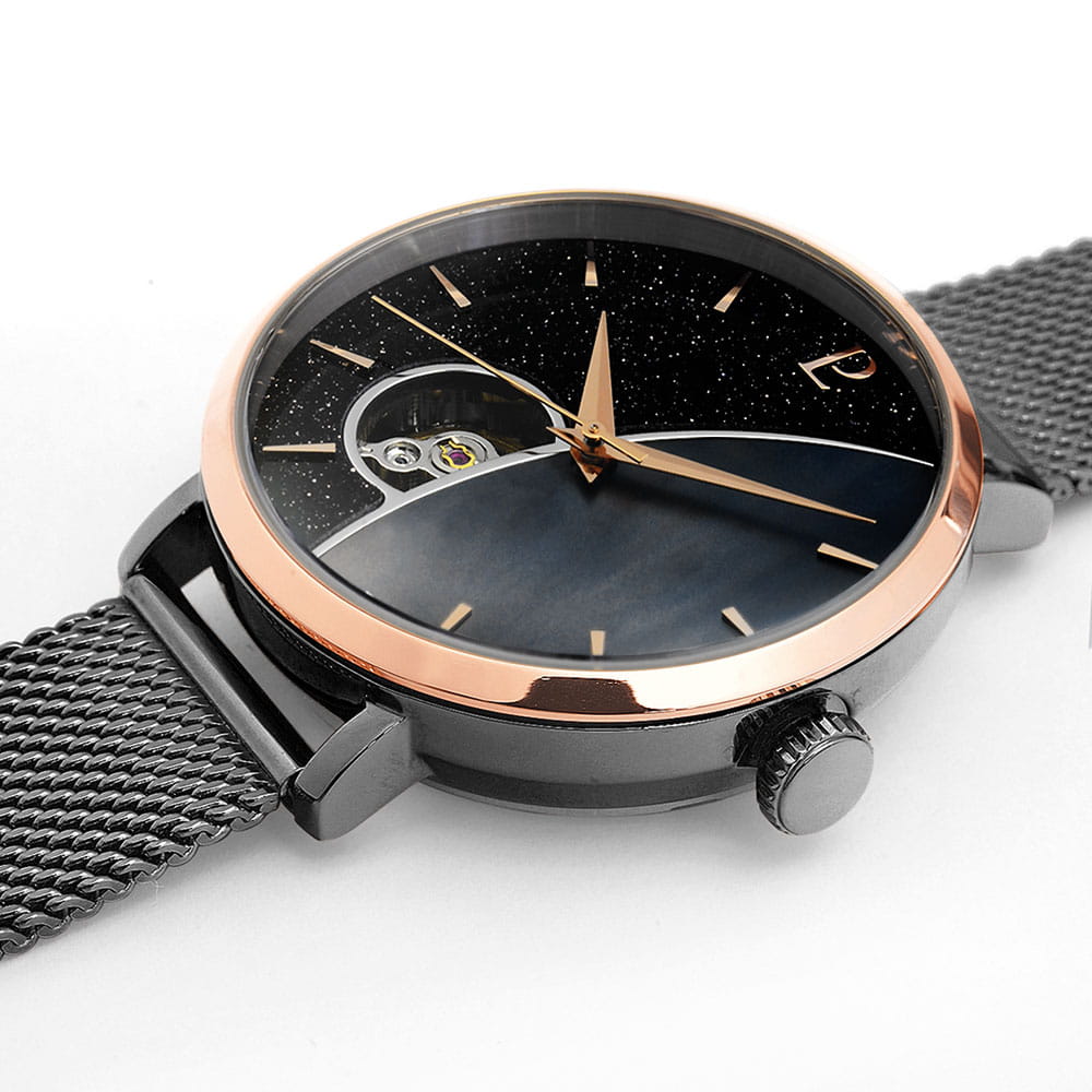 Женские механические часы с автоподзаводом Pierre Lannier Celeste 302F789. Минеральное стеклоМинеральное стеклоМинеральное стекло представляет собой искусственно выращенный минерал кварца. Такое стекло отличается особой устойчивостью к повреждениям и царапинам. Уступает по некоторым качествам сапфировому стеклу. устойчивое к мелким механическим повреждениям. Центральные часовая, минутная и секундная стрелки. Корпус и браслет выполнен из нержавеющей стали с IP-покрытиемIP-покрытиеМетод ионного напыления. Демонстрирует повышенную устойчивость к истиранию, окислению и химическим веществам. Под воздействием высокого давления и температуры около 1500°C молекулы металла надёжно соединяются с частицами корпуса часов.. Водостойкость: 30 метров, позволит защитить корпус от случайных брызг или капель дождя. Прозрачная задняя крышка. Браслет миланского плетения с раскладной застёжкойРаскладная застёжкаТакой тип застёжки используется только на браслетах из металла. Она никогда не раскрывается полностью, происходит разделение на 2 и более частей. Раскладывающая застёжка снизит вероятность потери часов к минимуму..