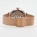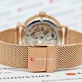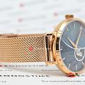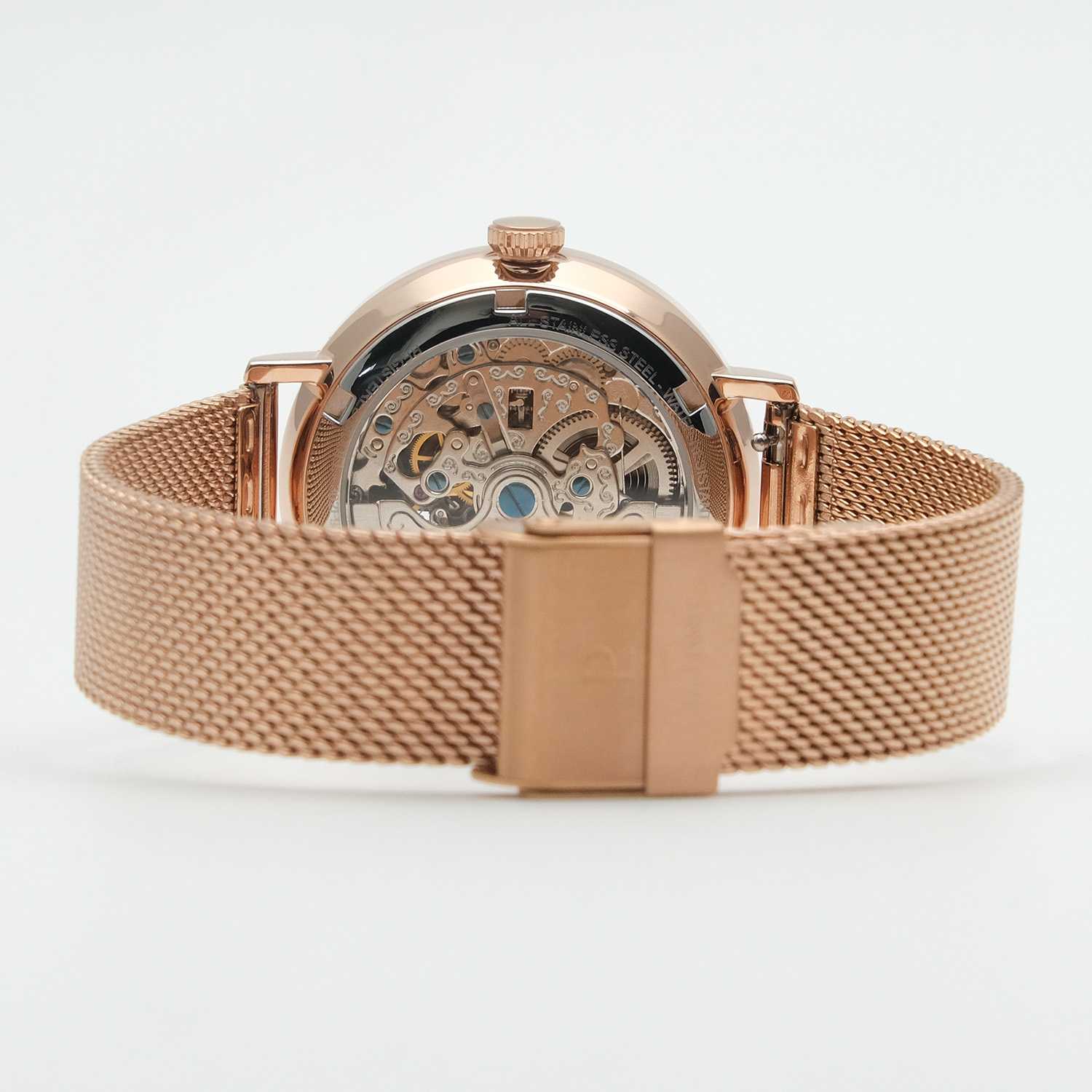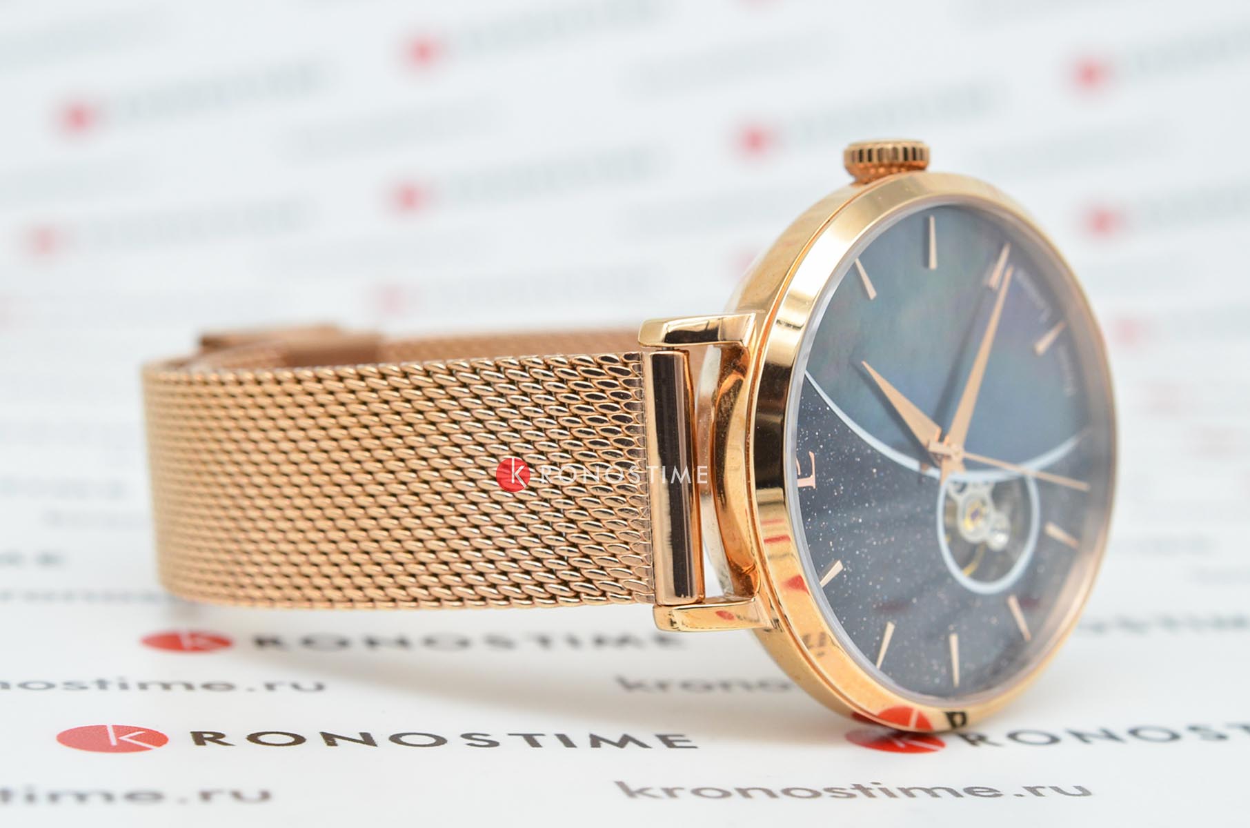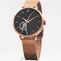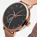 Браслет «миланская сетка» из стали с IP-покрытием подчёркивает утончённый, плотно облегающий дизайн. Он закреплён удобным раскладным замкомРаскладной замокДанный вариант застежки используется только на часах с металлическим браслетом. Отличительная особенность такого крепления в том, что длина браслета становится универсальной и вы можете самостоятельно отрегулировать нужный вам размер – застежка просто двигается по браслету часов.— надёжно и изящно.