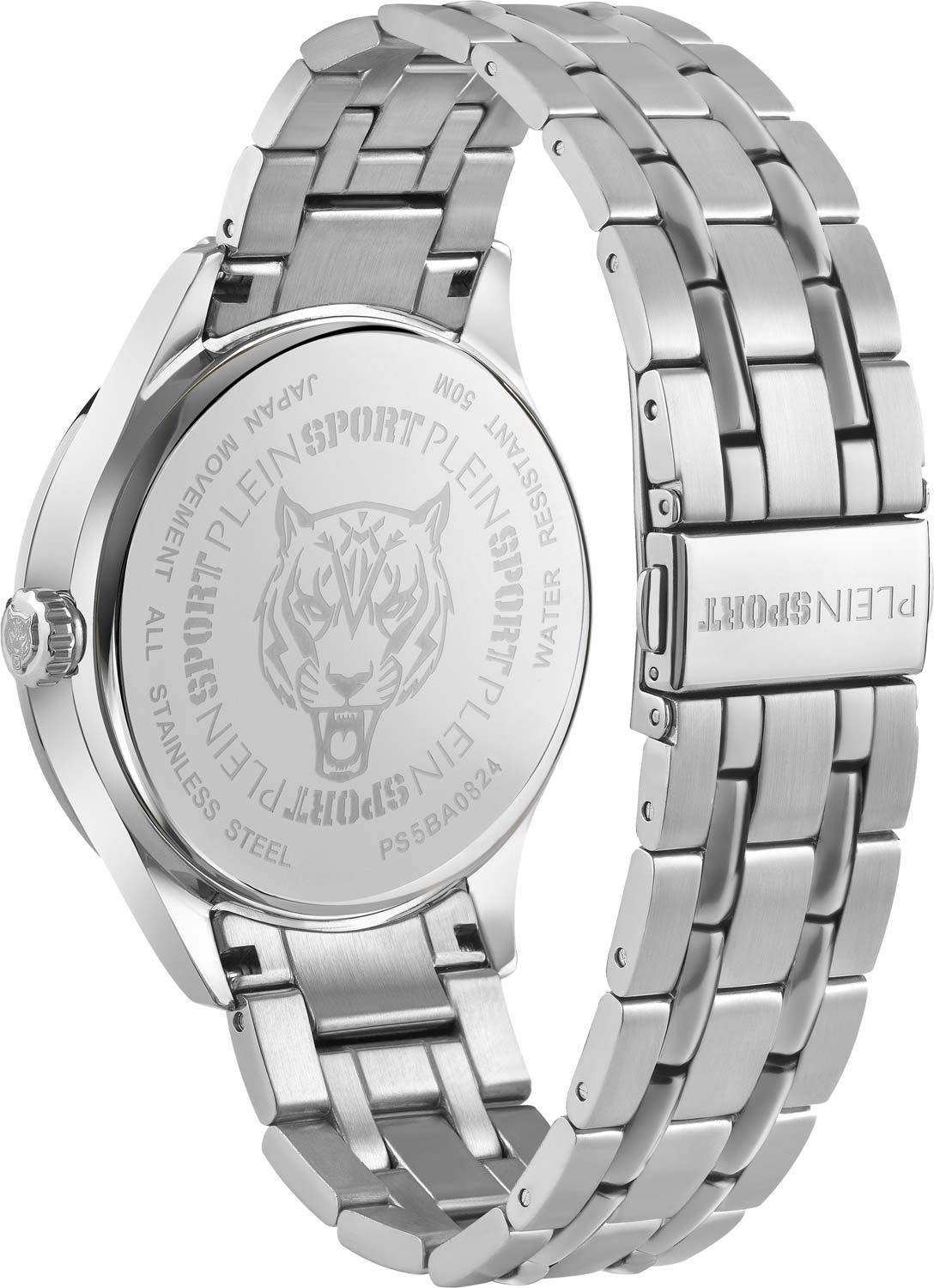 Дерзкий аксессуар со смелым, бунтарским дизайном будет с вами в любом приключении. Мужские кварцевые Plein Sport PS5BA0824 часы. Корпус часов изготовлен из стали. Циферблат дополнен паттерном ''след когтей''. Метки в виде штрихов, фирменное лого в виде тигра в положении 6 часов. Рифленая заводная головка с защитой. Класс водозащиты: 50 метров, позволит защитить корпус от случайных брызг или капель дождя. Стальной браслет на раскладной застёжкеРаскладная застёжкаТакой тип застёжки используется только на браслетах из металла. Она никогда не раскрывается полностью, происходит разделение на 2 и более частей. Раскладывающая застёжка снизит вероятность потери часов к минимуму..