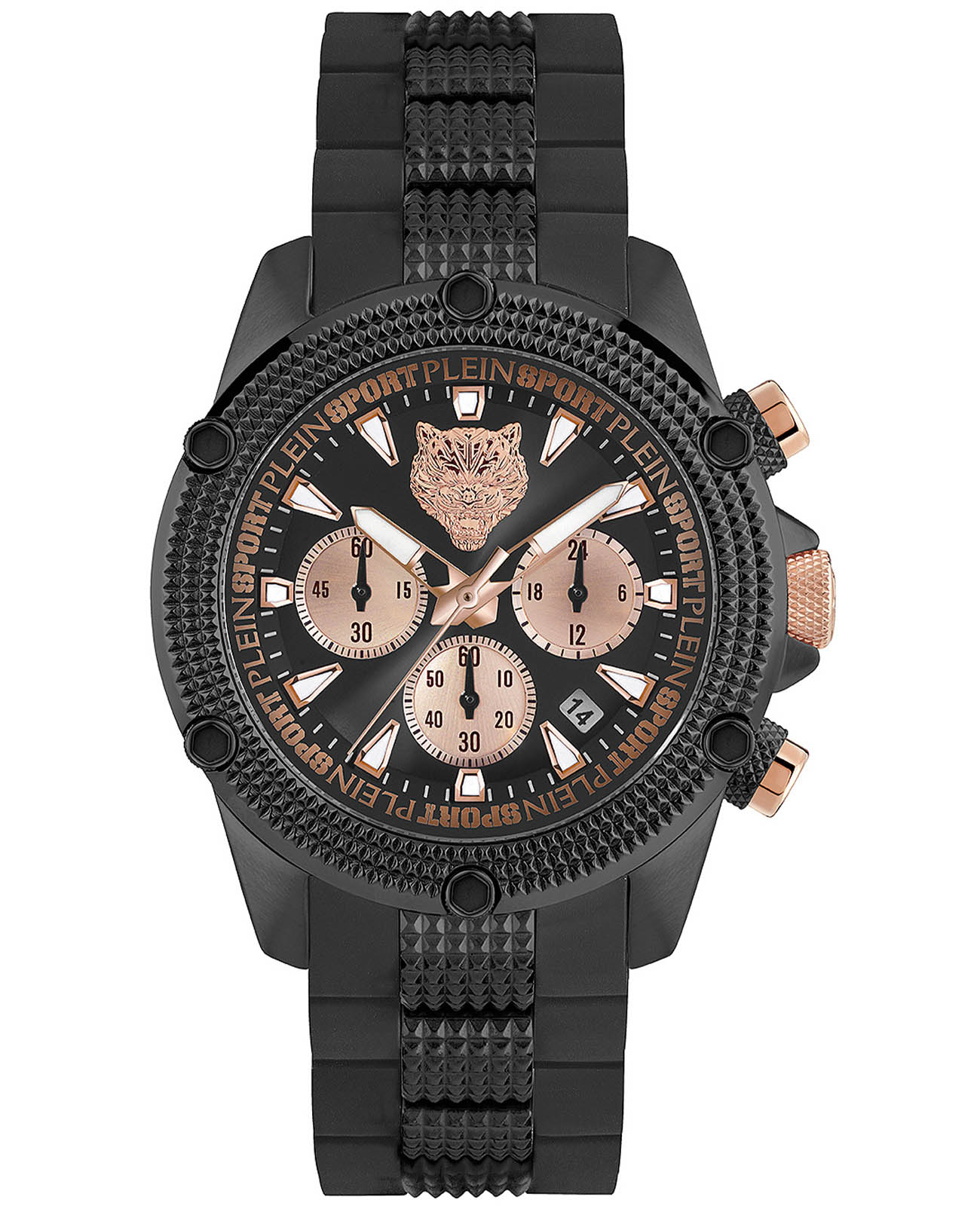 Немецкие мужские кварцевые часы-хронографХронографФункция позволяет измерять отрезки времени с особой точностью: часы, минуты, секунды. Верным признаком хронографа является наличие на циферблате 3 дополнительных окошек-счётчиков. с секундомеромСекундомерСекундоме́р — прибор, способный измерять интервалы времени с точностью до долей секунды. Plein Sport Hurricane PSDBA0323, кварцевый механизм с высокой точностью. Класс водозащиты: 50 метров, позволит защитить корпус от случайных брызг или капель дождя. Корпус выполнен из стали с IP-покрытиемIP-покрытиеМетод ионного напыления. Демонстрирует повышенную устойчивость к истиранию, окислению и химическим веществам. Под воздействием высокого давления и температуры около 1500°C молекулы металла надёжно соединяются с частицами корпуса часов.. Силиконовый ремешок на стандартной застёжке. Минеральное стеклоМинеральное стеклоМинеральное стекло представляет собой искусственно выращенный минерал кварца. Такое стекло отличается особой устойчивостью к повреждениям и царапинам. Уступает по некоторым качествам сапфировому стеклу. устойчивое к мелким механическим повреждениям. Окошко даты находится в положении между 4 и 5 часов.