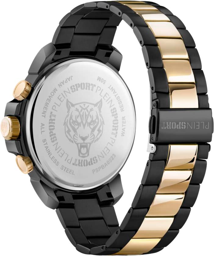 Немецкие мужские кварцевые часы Plein Sport Powerlift PSPBA0923, кварцевый механизм с высокой точностью. Класс водозащиты: 50 метров, позволит защитить корпус от случайных брызг или капель дождя. Корпус часов изготовлен из стали с IP-покрытиемIP-покрытиеМетод ионного напыления. Демонстрирует повышенную устойчивость к истиранию, окислению и химическим веществам. Под воздействием высокого давления и температуры около 1500°C молекулы металла надёжно соединяются с частицами корпуса часов.. Стальной браслет на раскладной застёжкеРаскладная застёжкаТакой тип застёжки используется только на браслетах из металла. Она никогда не раскрывается полностью, происходит разделение на 2 и более частей. Раскладывающая застёжка снизит вероятность потери часов к минимуму. с IP-покрытиемIP-покрытиеМетод ионного напыления. Демонстрирует повышенную устойчивость к истиранию, окислению и химическим веществам. Под воздействием высокого давления и температуры около 1500°C молекулы металла надёжно соединяются с частицами корпуса часов.. Время в 24-х часовом формате, дата и день недели вынесены на отдельные циферблаты.