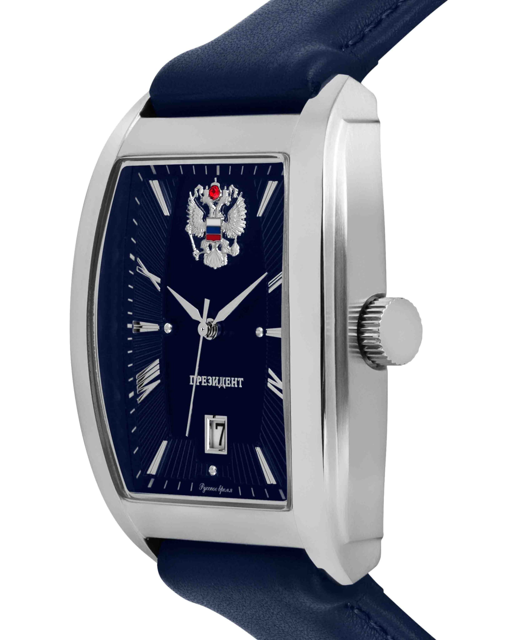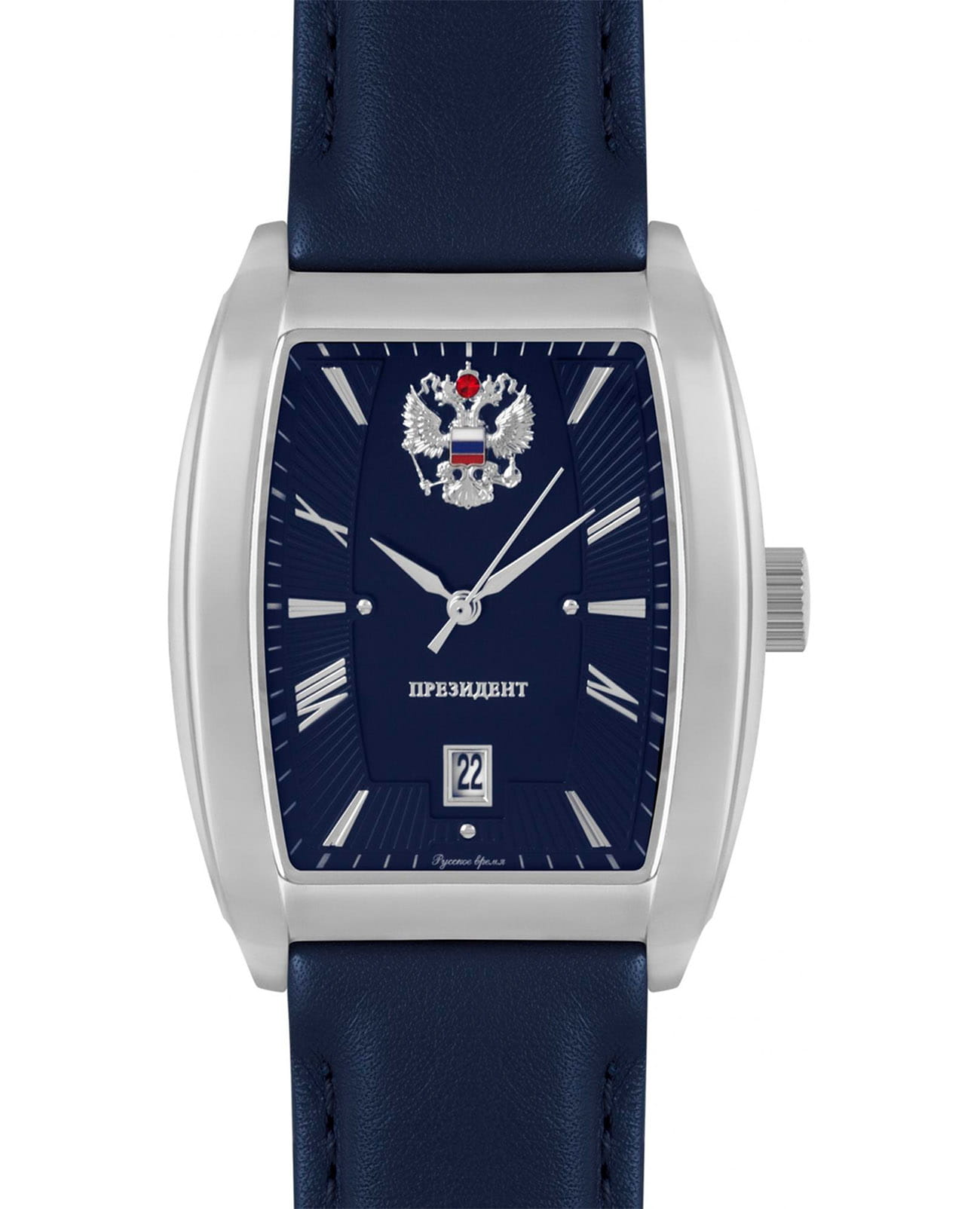 Мужские классические часы Русское Время из коллекции Президент — это воплощение точности и стиля, созданные в России. Модель оснащена японским кварцевым механизмом Miyota 2315, обеспечивающим надёжность и стабильность хода. Корпус выполненный из нержавеющей стали, защищён минеральным стекломМинеральное стеклоМинеральное стекло представляет собой искусственно выращенный минерал кварца. Такое стекло отличается особой устойчивостью к повреждениям и царапинам. Уступает по некоторым качествам сапфировому стеклу., устойчивым к мелким повреждениям. Часы имеют окошко даты, расположенное в положении 3 часов, что делает его удобным для восприятия. Ремешок синего цвета изготовлен из натуральной кожи и дополнен стандартной застёжкой, обеспечивающей комфорт и надёжную фиксацию на запястье. Ширина ремешка составляет 22 мм, а его размеры — 37x49 мм, толщина — 11 мм. В комплект поставки входят часы, фирменная упаковка, инструкция на русском языке и заполненный гарантийный талон. Часы водонепроницаемы до 30 метров (), что позволяет использовать их в повседневных условиях — при мытье рук или под лёгким дождём. Эти часы станут универсальным аксессуаром для тех, кто ценит сочетание точности, качества и элегантного дизайна — идеальный выбор для повседневной носки и делового образа.