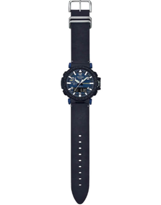 Брендовый аксессуар в синем исполнении включает в себя множество дополнительных функций, без которых не обойтись любителям приключений. Среди них высотомер, барометр, высокоточный термометр -10°C /+60°C, встроенный компас, хронографХронографФункция позволяет измерять отрезки времени с особой точностью: часы, минуты, секунды. Верным признаком хронографа является наличие на циферблате 3 дополнительных окошек-счётчиков., таймер, будильник, автоматический календарь, мировое времяМировое время Полезное часовое усложнение, отображающее время в основных городах и известных областях по всему миру, оно связано с часовыми поясами, удобно для путешественников и бизнесменов. – 29 часовых поясов, UTCUTCВсемирное кординационное время, не имеющее привязки к географическому положению Гринвича, основывается на атомном отсчёте времени. Регулировка времени осуществляется более точно, чем устаревшее GMT.