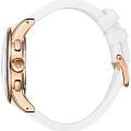 Мужские кварцевые часы Quantum ADG991.433 из коллекции Adrenaline — смелый спортивный акцент с функцией двойного времени. Корпус круглый, из нержавеющей стали с PVD-покрытиемPVDУльтратонкое покрытие наносится в технике вакуумного напыления, сочетает в себе нитрид титана особой прочности со слоем золота или оксида хрома. Несёт в себе декоративную или защитную функцию. цвета розового золота, диаметром 47 мм. Циферблат — бедый с индикацией даты, дня недели и второго часового поясаВторой часовой поясФункция, позволяющая отображать время двух часовых поясов одновременно.. Стекло — минеральноеМинеральное стеклоМинеральное стекло представляет собой искусственно выращенный минерал кварца. Такое стекло отличается особой устойчивостью к повреждениям и царапинам. Уступает по некоторым качествам сапфировому стеклу. с антибликовым покрытием. Водонепроницаемость 100 м. Ремешок — белый силиконовый на стандартной застёжке. Идеальный выбор для тех, кто ценит турецкий дизайн и активный образ жизни.