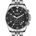 Мужские часы c хронографомХронографФункция позволяет измерять отрезки времени с особой точностью: часы, минуты, секунды. Верным признаком хронографа является наличие на циферблате 3 дополнительных окошек-счётчиков. Quantum PWG930.350, кварцевый механизм с высокой точностью. Минеральное стеклоМинеральное стеклоМинеральное стекло представляет собой искусственно выращенный минерал кварца. Такое стекло отличается особой устойчивостью к повреждениям и царапинам. Уступает по некоторым качествам сапфировому стеклу. устойчивое к появлению царапин, обладающее высокой прозрачностью. Класс водозащиты: 100 метров, позволит плавать, нырять и заниматься другими водными видами спорта. Корпус часов изготовлен из нержавеющей стали. Стрелки и метки с люминесцентным покрытиемЛюминесцентное покрытиеПозволяет считывать показания времени в темноте. Производители наносят на стрелки, часовые индексы, безель или поверхность циферблата светонакопительный состав, дающий холодное свечение.. Стальной браслет на раскладной застёжкеРаскладная застёжкаТакой тип застёжки используется только на браслетах из металла. Она никогда не раскрывается полностью, происходит разделение на 2 и более частей. Раскладывающая застёжка снизит вероятность потери часов к минимуму.. БезельБезельВнешний ободок, закрепляющий стекло. В спортивных часах так называется поворотное кольцо с делениями на циферблате, выполняет роль таймера – замеряет отрезки времени на шкале. Неподвижный безель – элемент декора. Однонаправленно вращающийся безель на дайверских часах позволяет фиксировать моменты погружения и выныривания на поверхность. с IP-покрытиемIP-покрытиеМетод ионного напыления. Демонстрирует повышенную устойчивость к истиранию, окислению и химическим веществам. Под воздействием высокого давления и температуры около 1500°C молекулы металла надёжно соединяются с частицами корпуса часов..