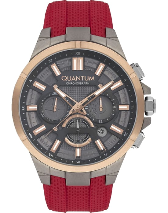 Мужские наручные часы-хронографХронографФункция позволяет измерять отрезки времени с особой точностью: часы, минуты, секунды. Верным признаком хронографа является наличие на циферблате 3 дополнительных окошек-счётчиков. Quantum TTG1003.068. Минеральное стеклоМинеральное стеклоМинеральное стекло представляет собой искусственно выращенный минерал кварца. Такое стекло отличается особой устойчивостью к повреждениям и царапинам. Уступает по некоторым качествам сапфировому стеклу. устойчивое к появлению царапин, обладающее высокой прозрачностью. Класс водозащиты: 50 метров, позволит защитить корпус от случайных брызг или капель дождя. Корпус часов изготовлен из нержавеющей стали. Стрелки и метки с люминесцентным покрытиемЛюминесцентное покрытиеПозволяет считывать показания времени в темноте. Производители наносят на стрелки, часовые индексы, безель или поверхность циферблата светонакопительный состав, дающий холодное свечение.. Каучуковый ремешок.